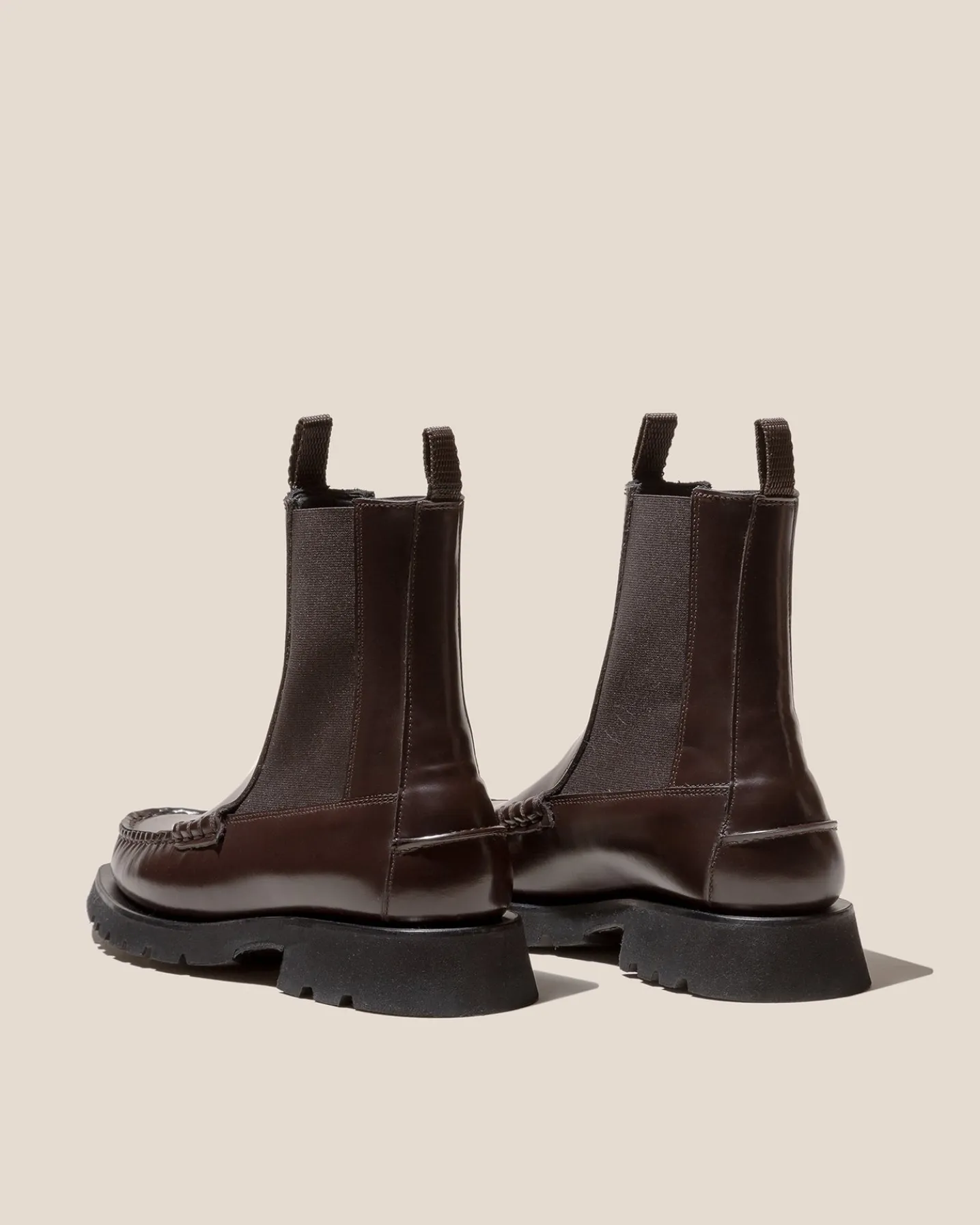 Mid-calf Chelsea boot crafted in Spanish full-grain black calf leather. Hand sewn using the traditional moccasin construction.