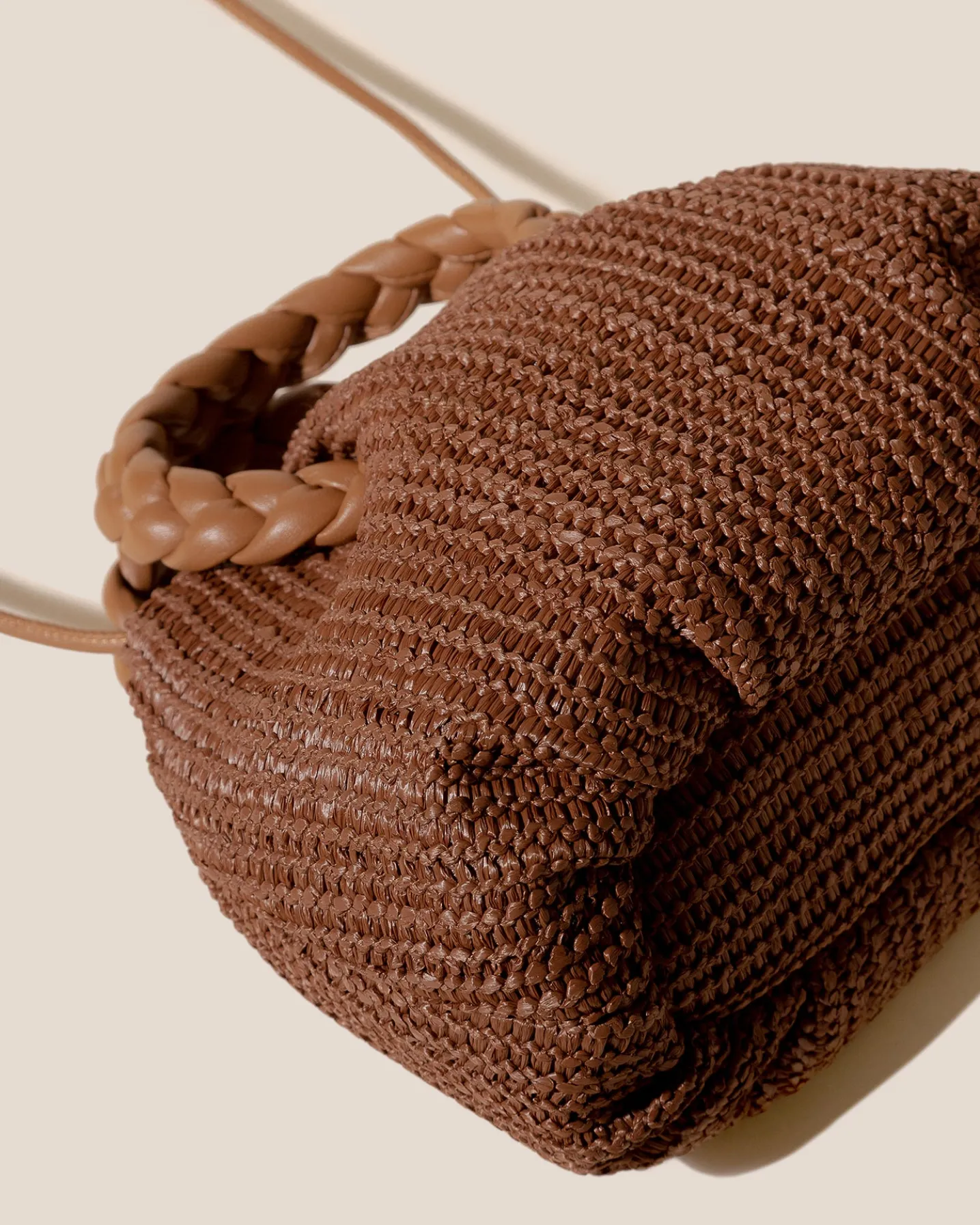 Mediumraffiatote with braided leather handles, lined with organic cotton canvas.