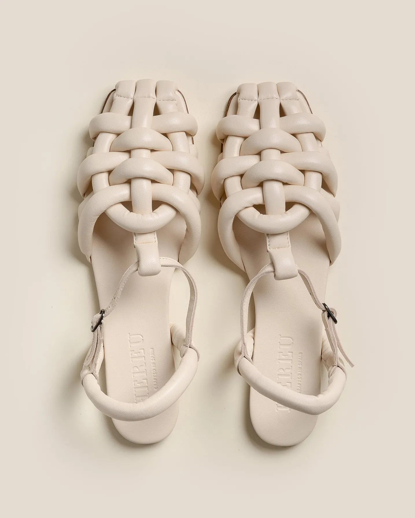 Square toe padded flat fisherman sandal crafted in soft Italian lambskin.