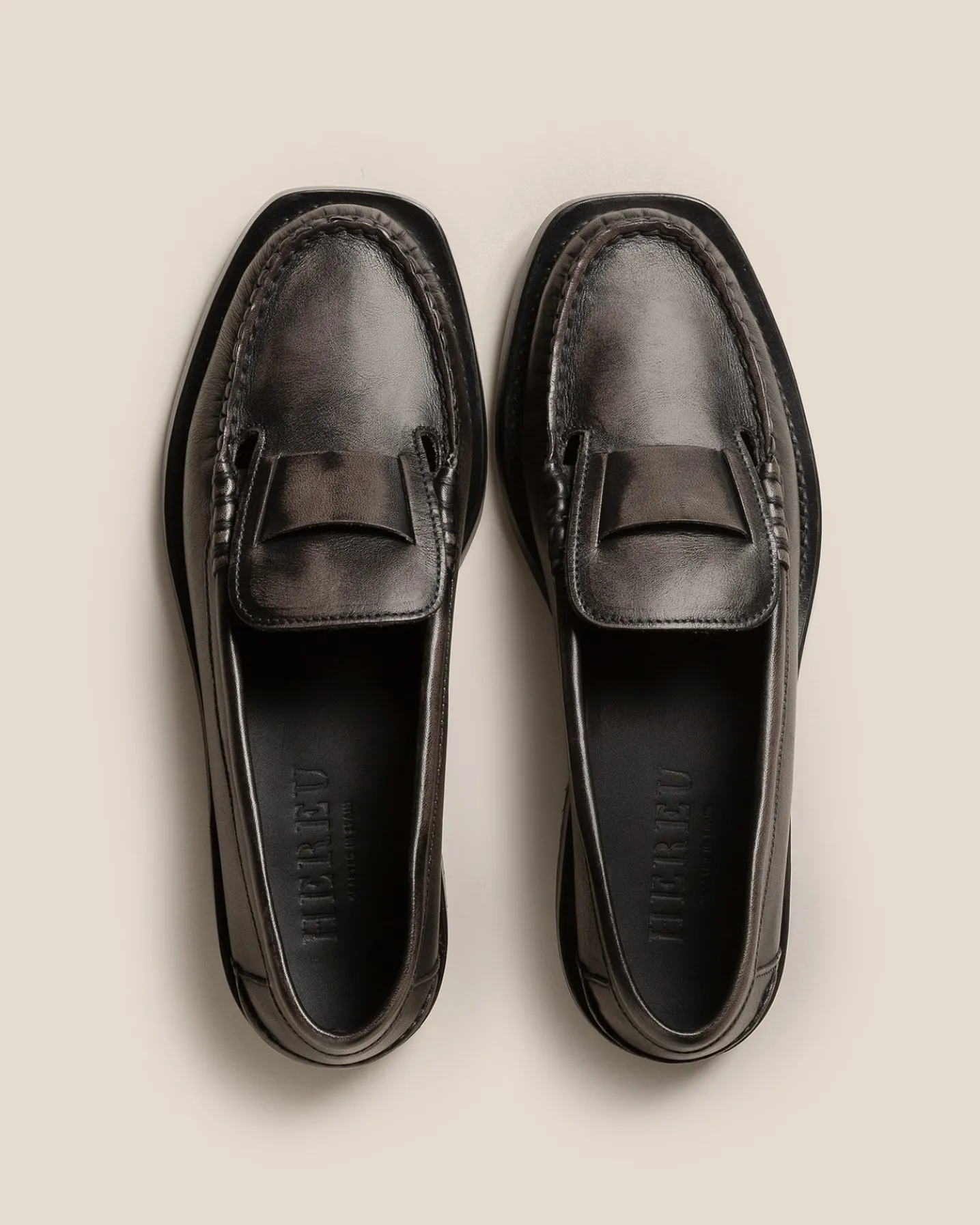 Slip-on loafer with interlaced detail crafted in duotone brushed calf leather.