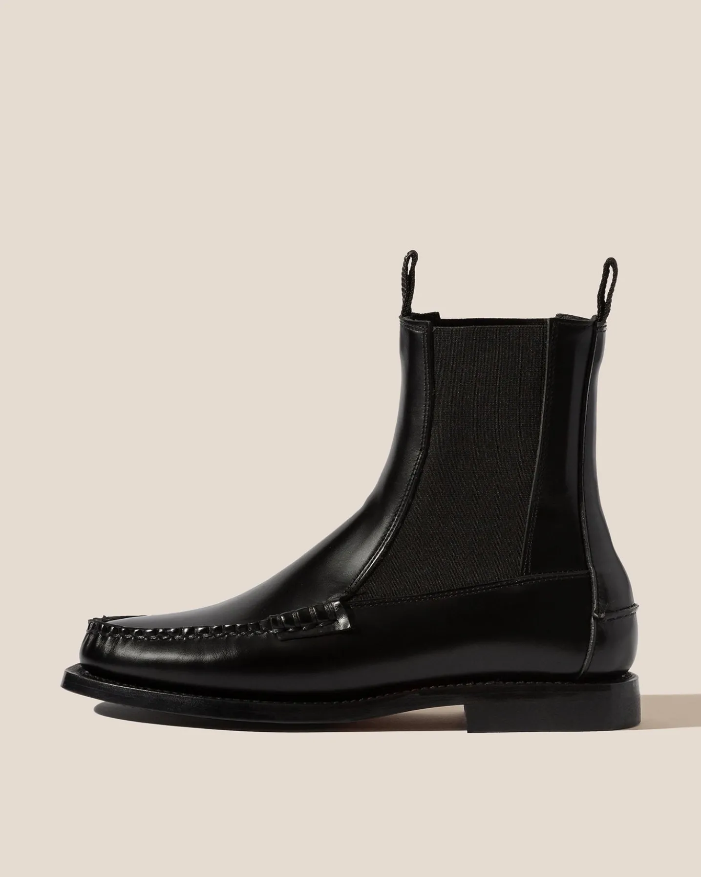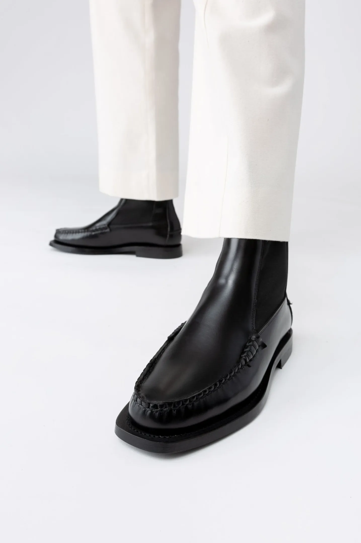 Mid-calf Chelsea boot loafer crafted in Spanish full-grain calf leather. Hand-sewn using the traditional moccasin construction. The outsole is stitched to the upper for extra durability and flexibility.