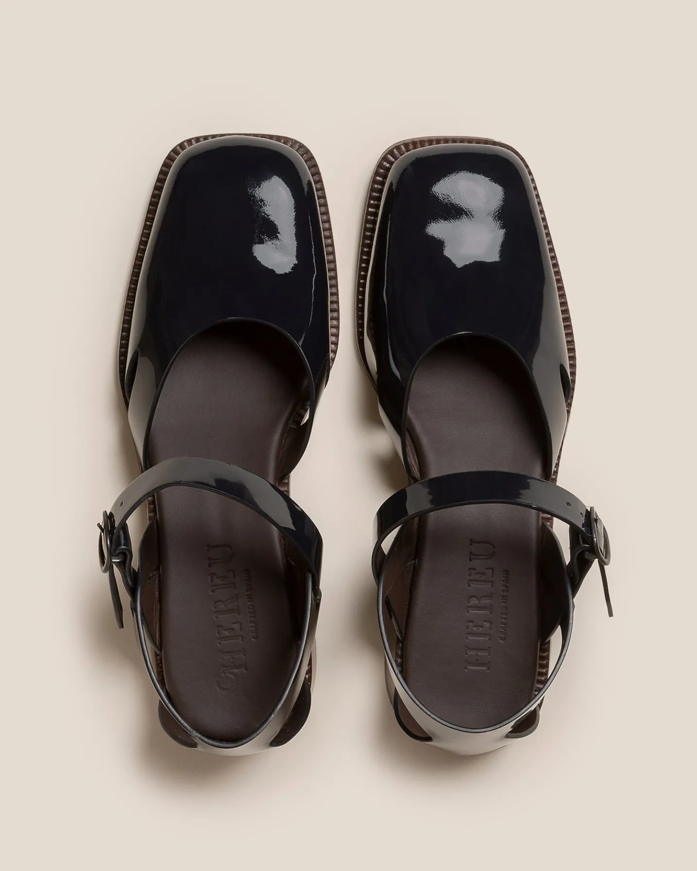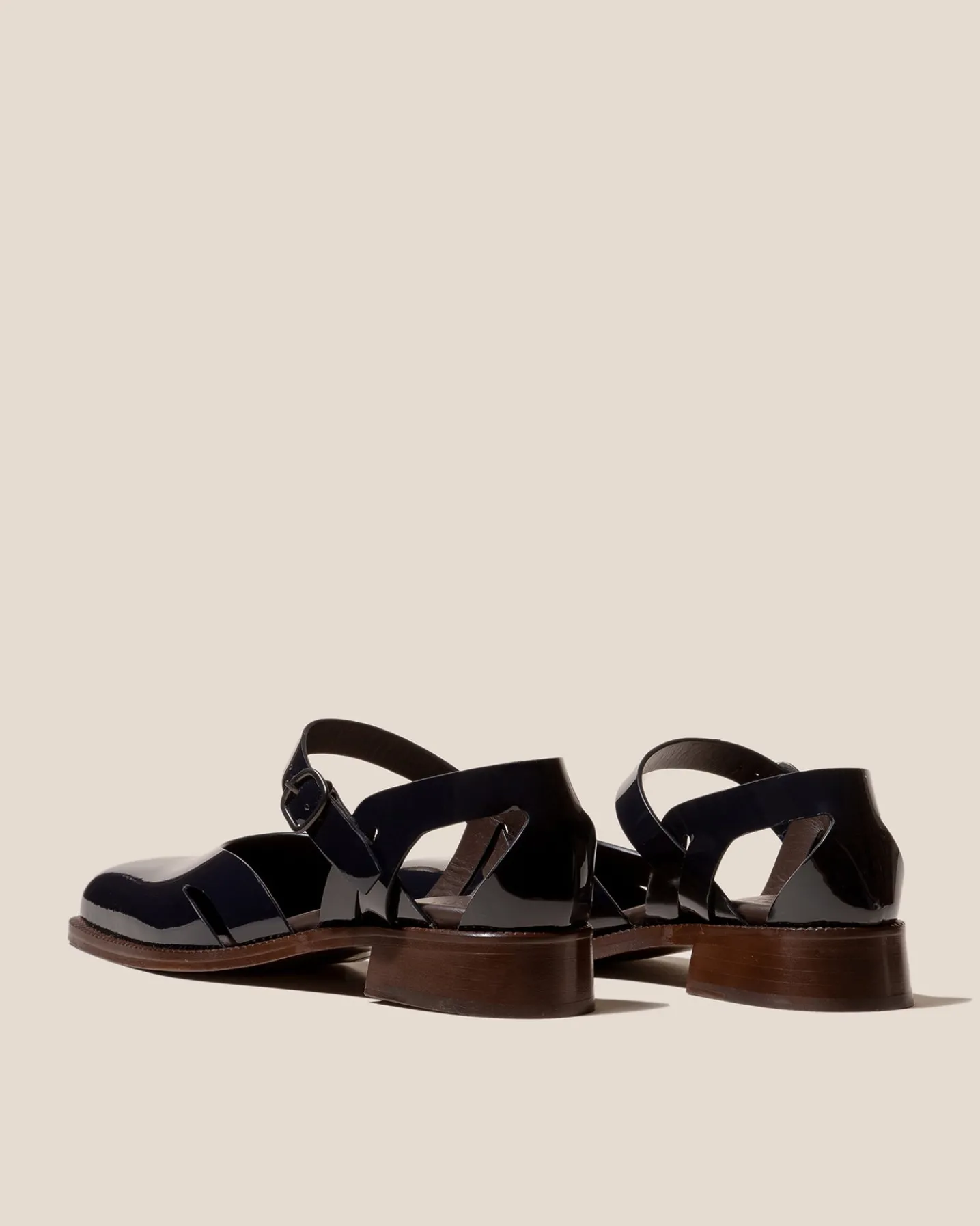 Square-toe two-part shoe with cut out detail, crafted in glossy calf leather.