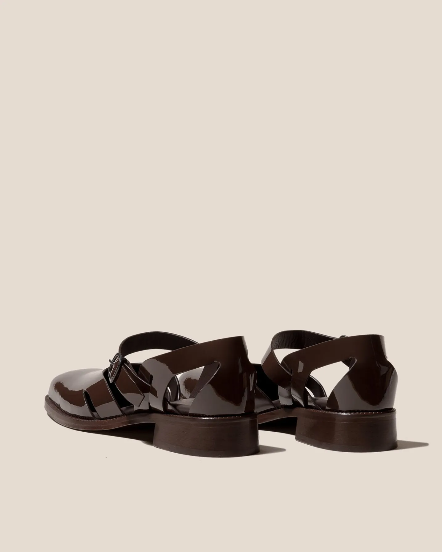 Square-toe two-part shoe with cut out detail, crafted in glossy calf leather.