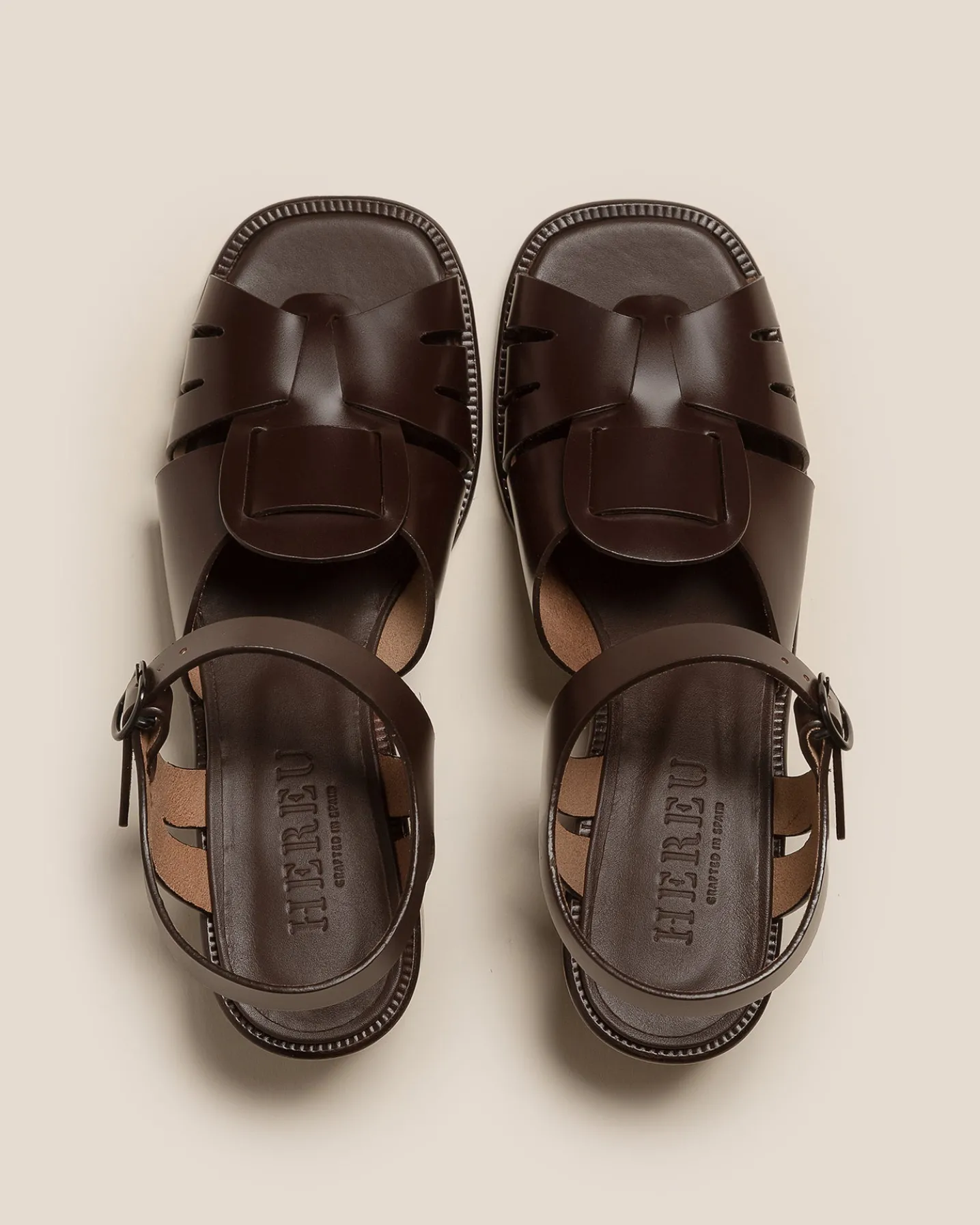 Squared open-toe fisherman sandal with cut out front detail, crafted in structured calf leather.