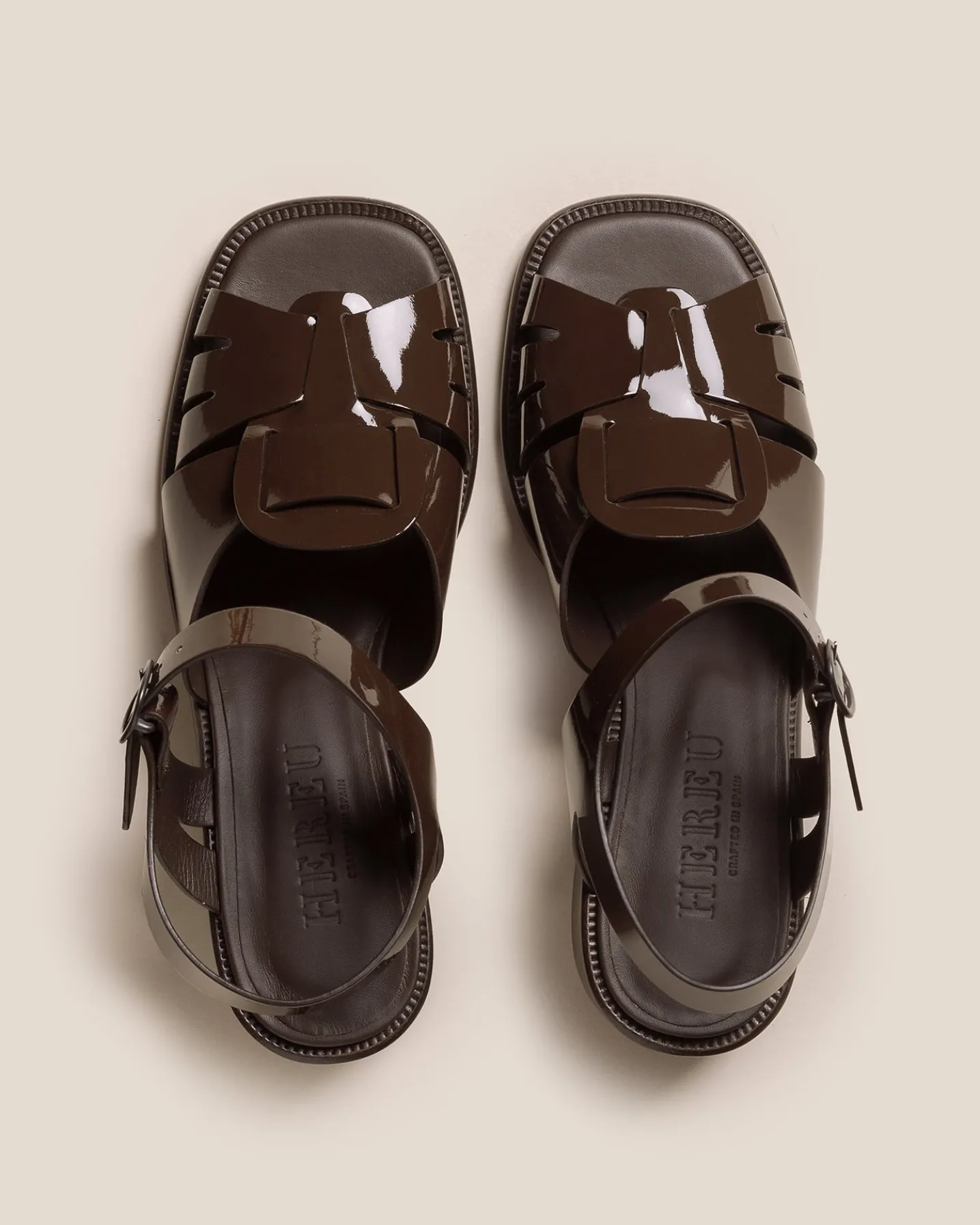 Squared open-toe fisherman sandal with cut out front detail, crafted in structured calf leather.