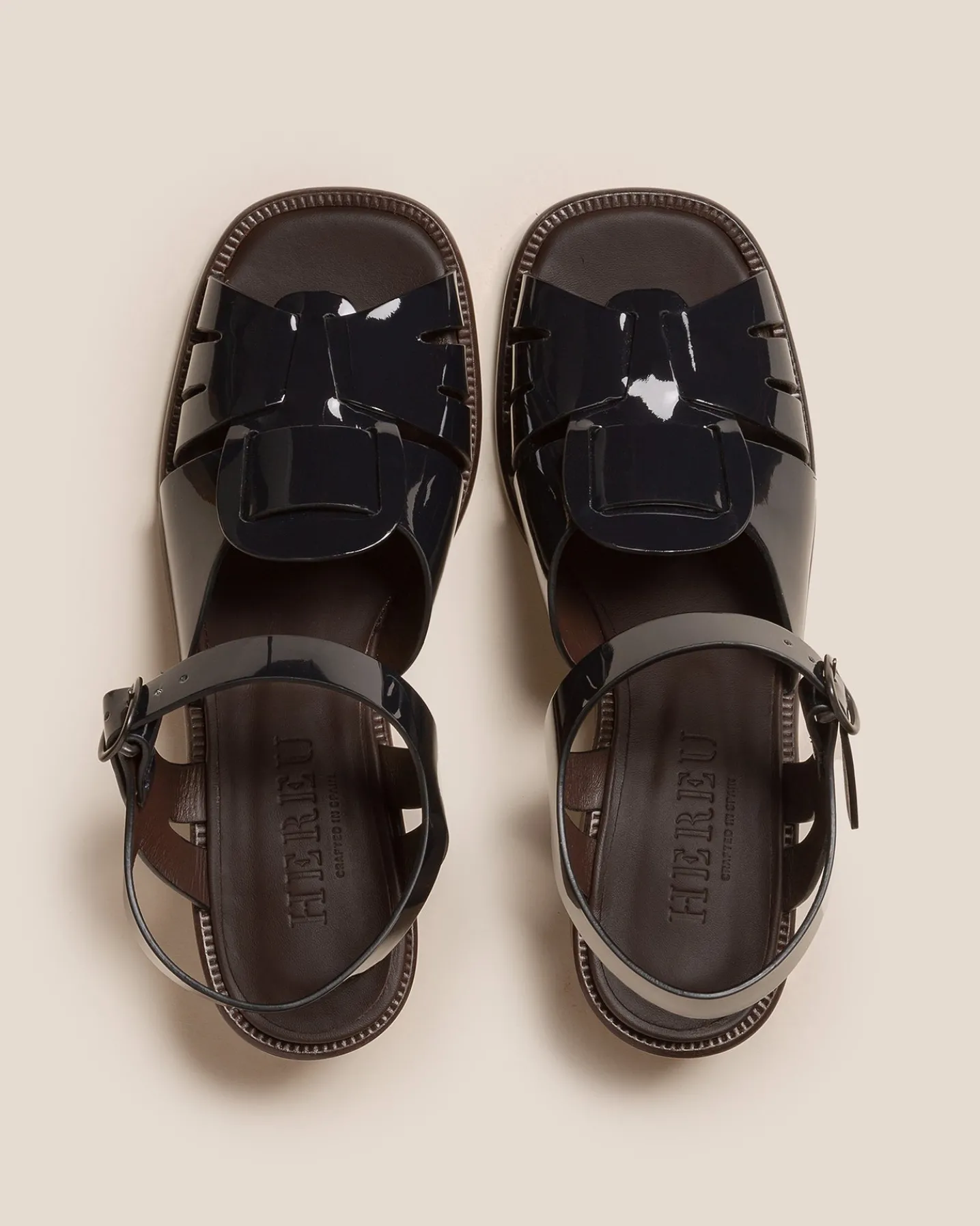 Squared open-toe fisherman sandal with cut out front detail, crafted in structured calf leather.