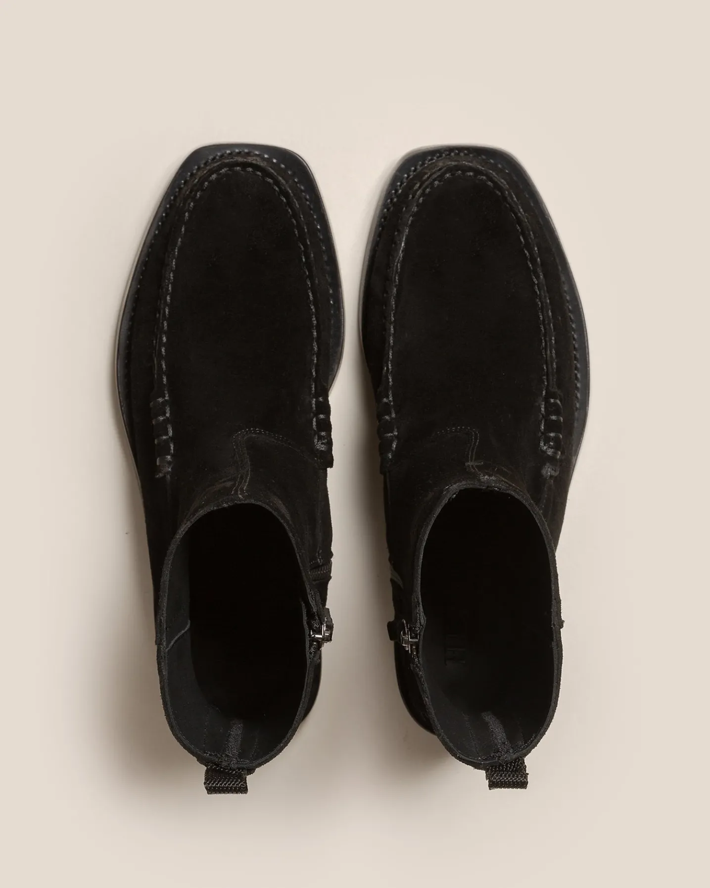 Mid-calf zipped boot, crafted in double sided calf suede.
