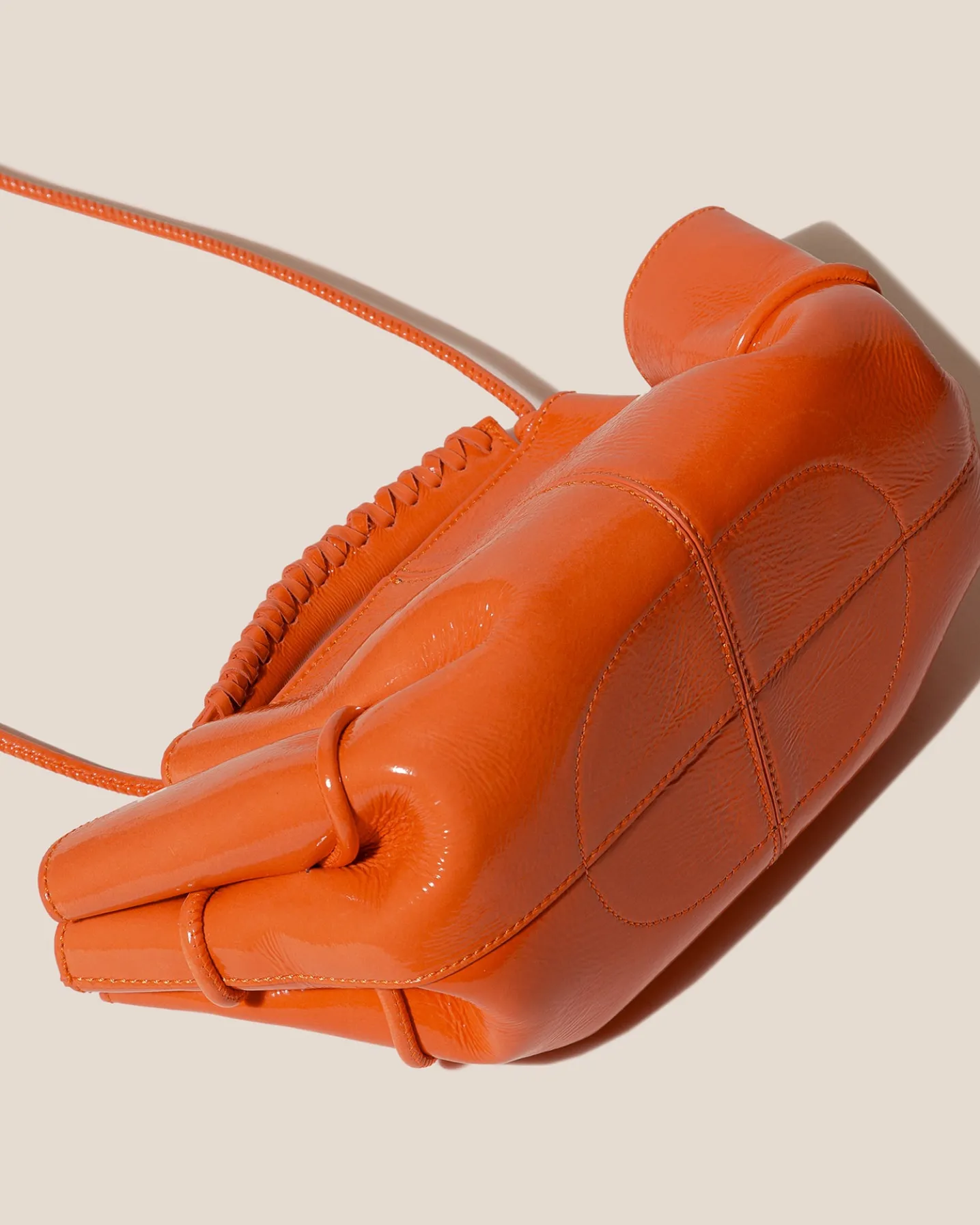 Small pleated crossbody/handbag crafted in crinkled glossy lambskin.