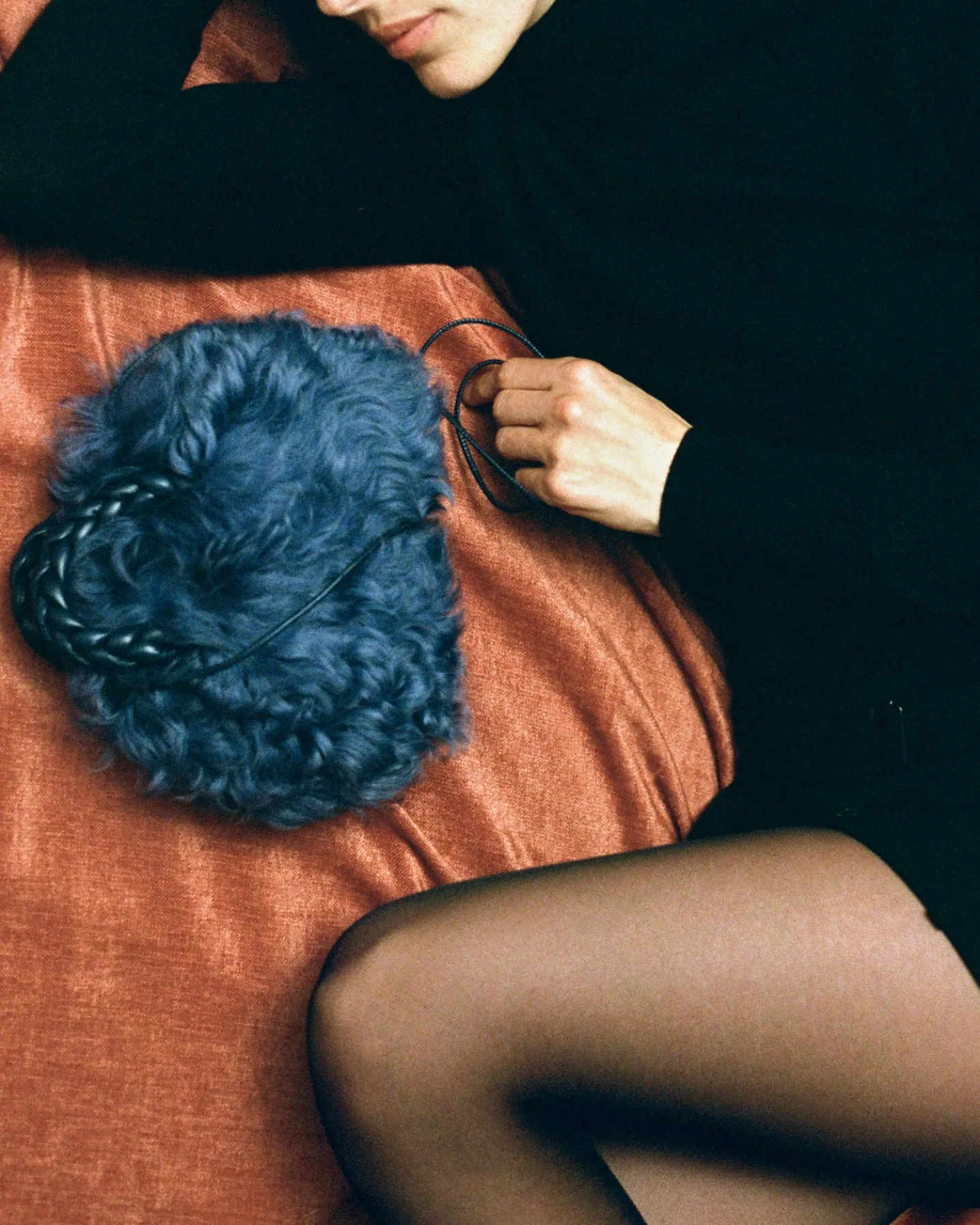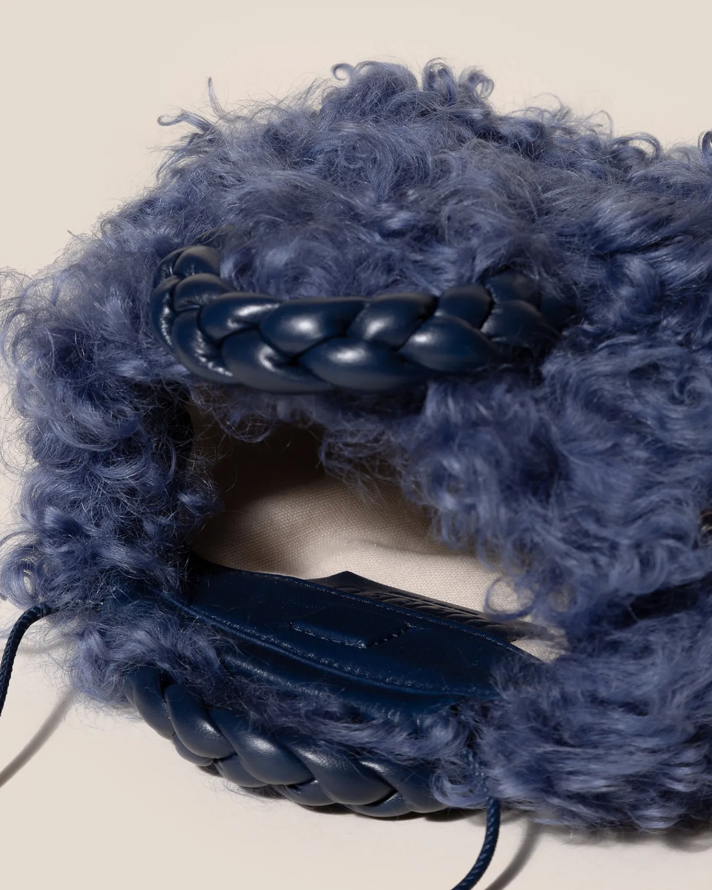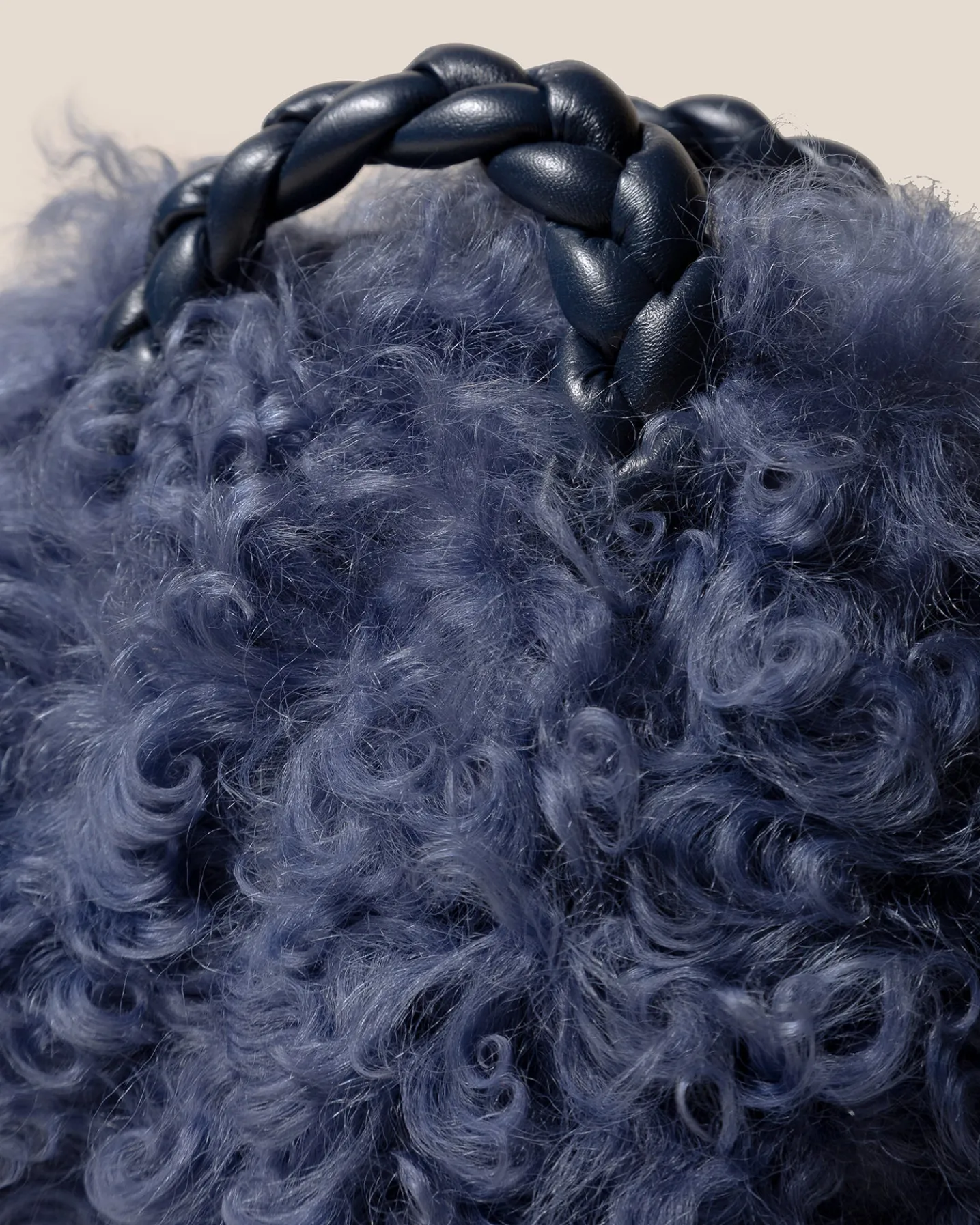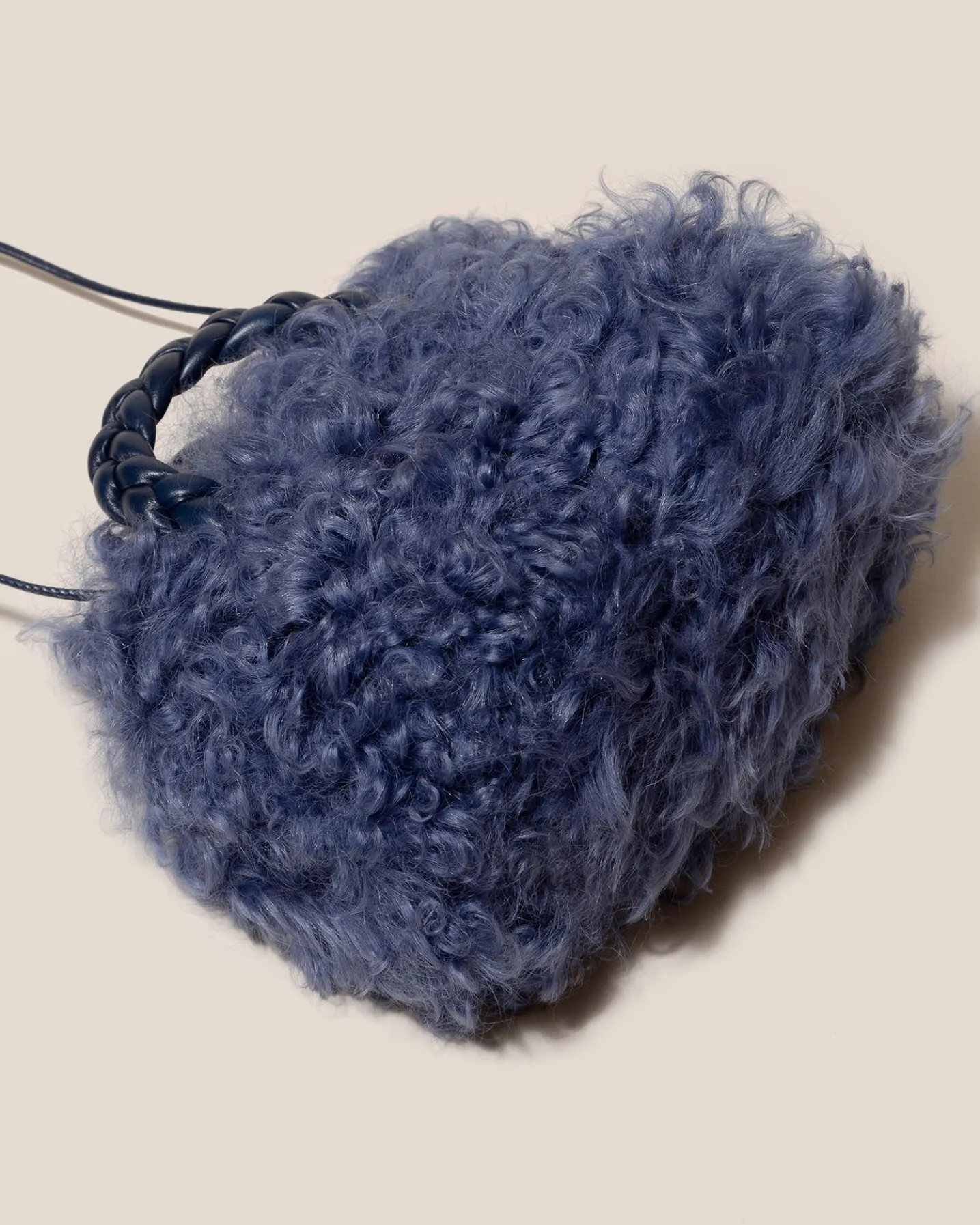 Small crossbody bag with braided leather handles, crafted in long hair shearling sheepskin and supple lambskin.
