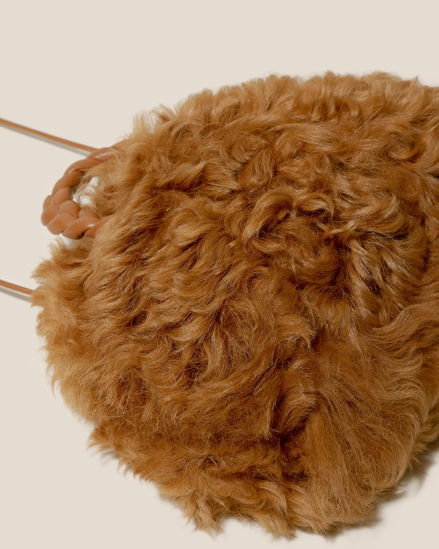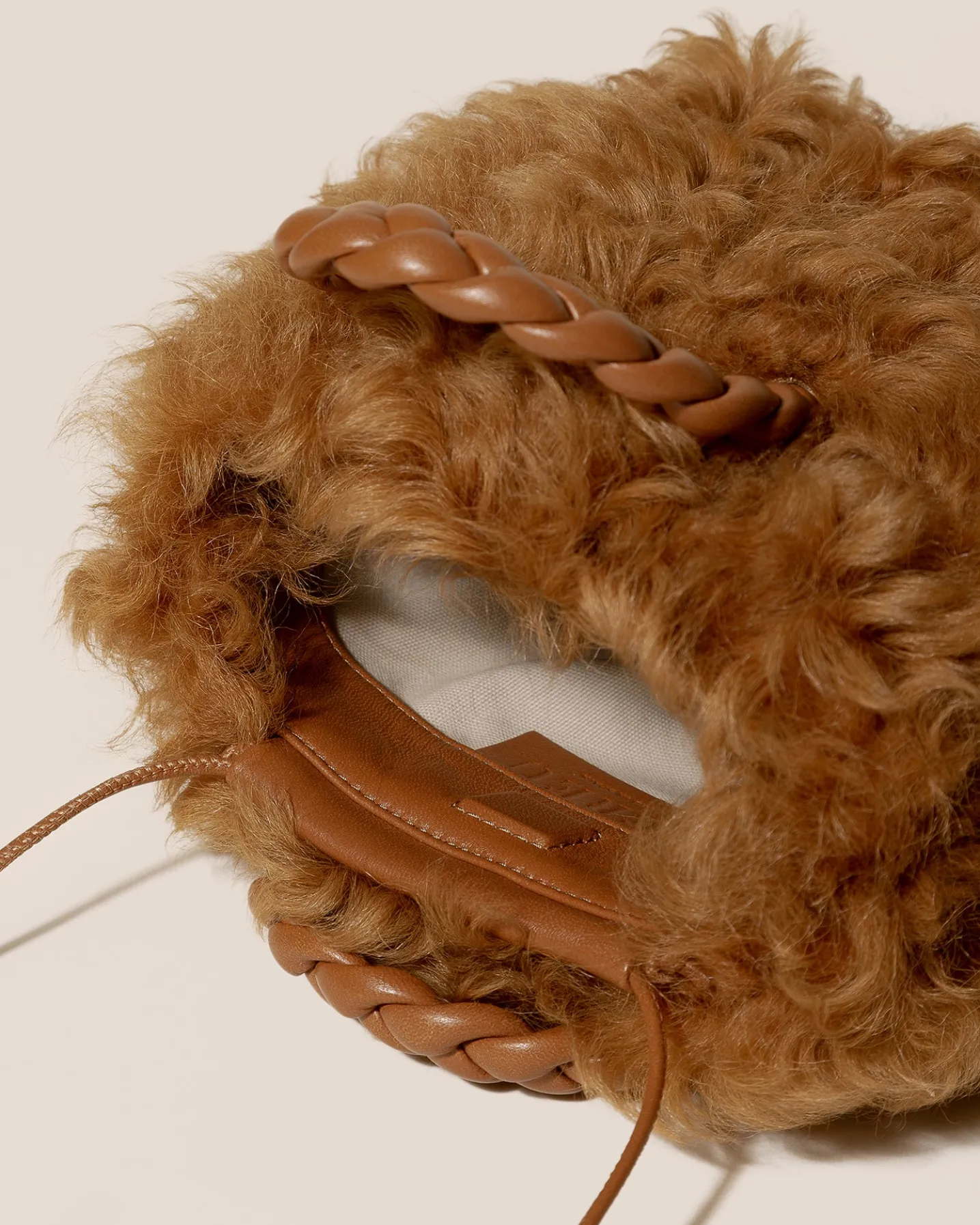 Small crossbody bag with braided leather handles, crafted in long hair shearling sheepskin and supple lambskin.