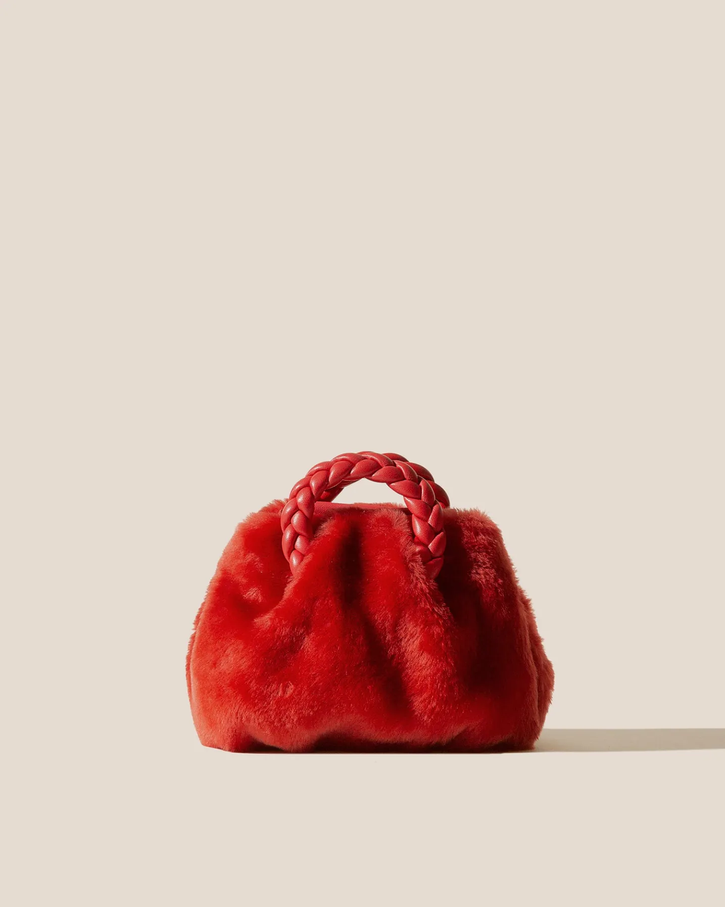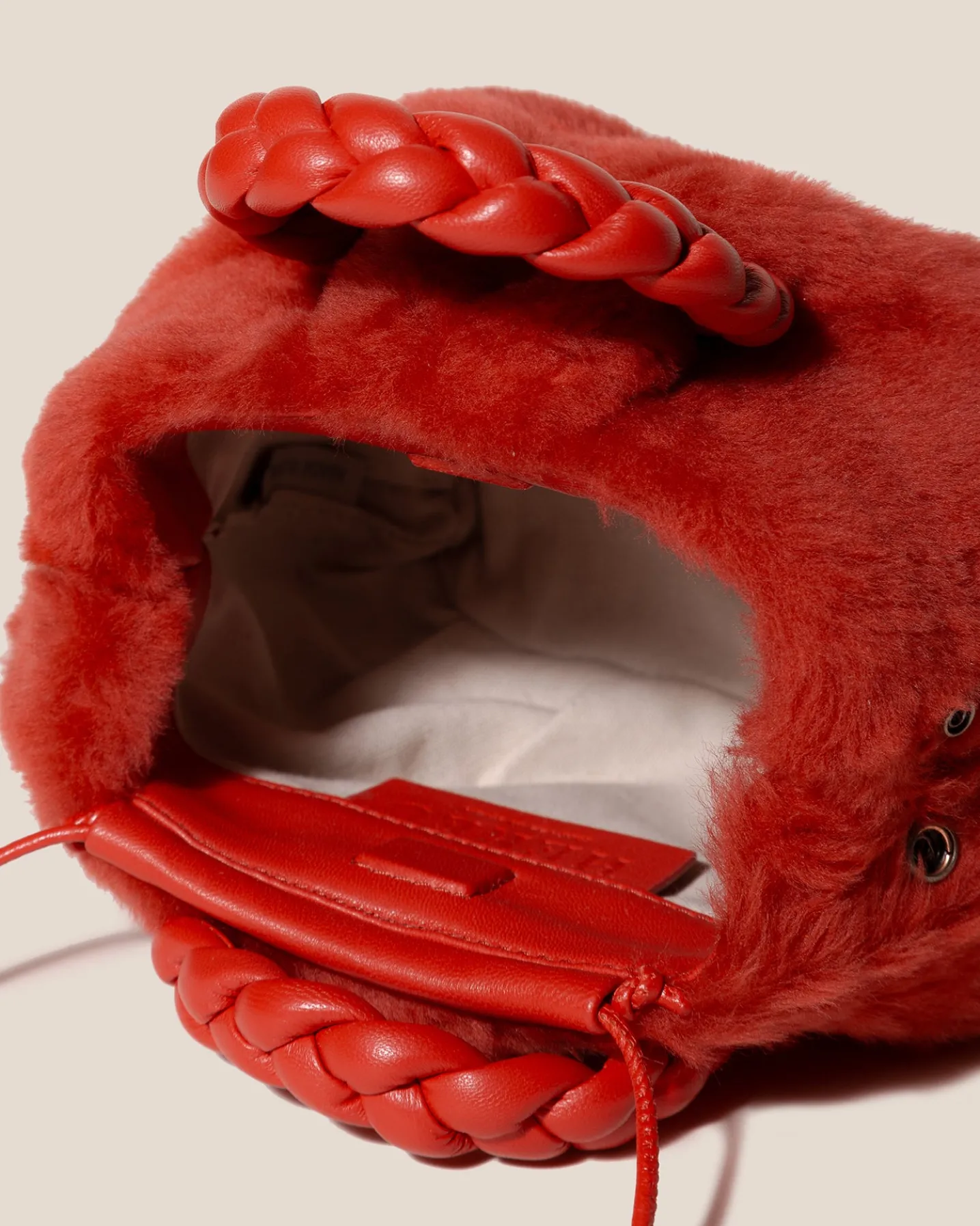 Small crossbody bag with braided leather handles, crafted in shearling sheepskin and supple lambskin.