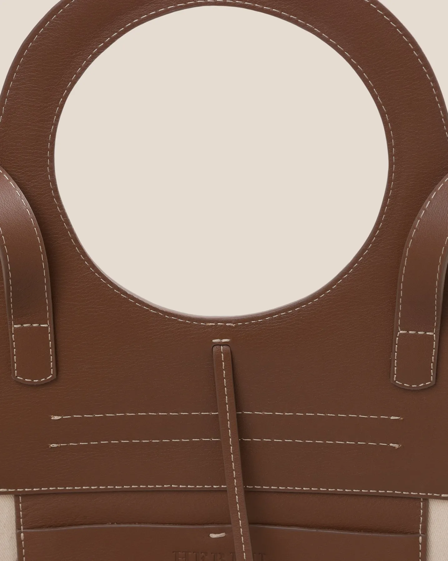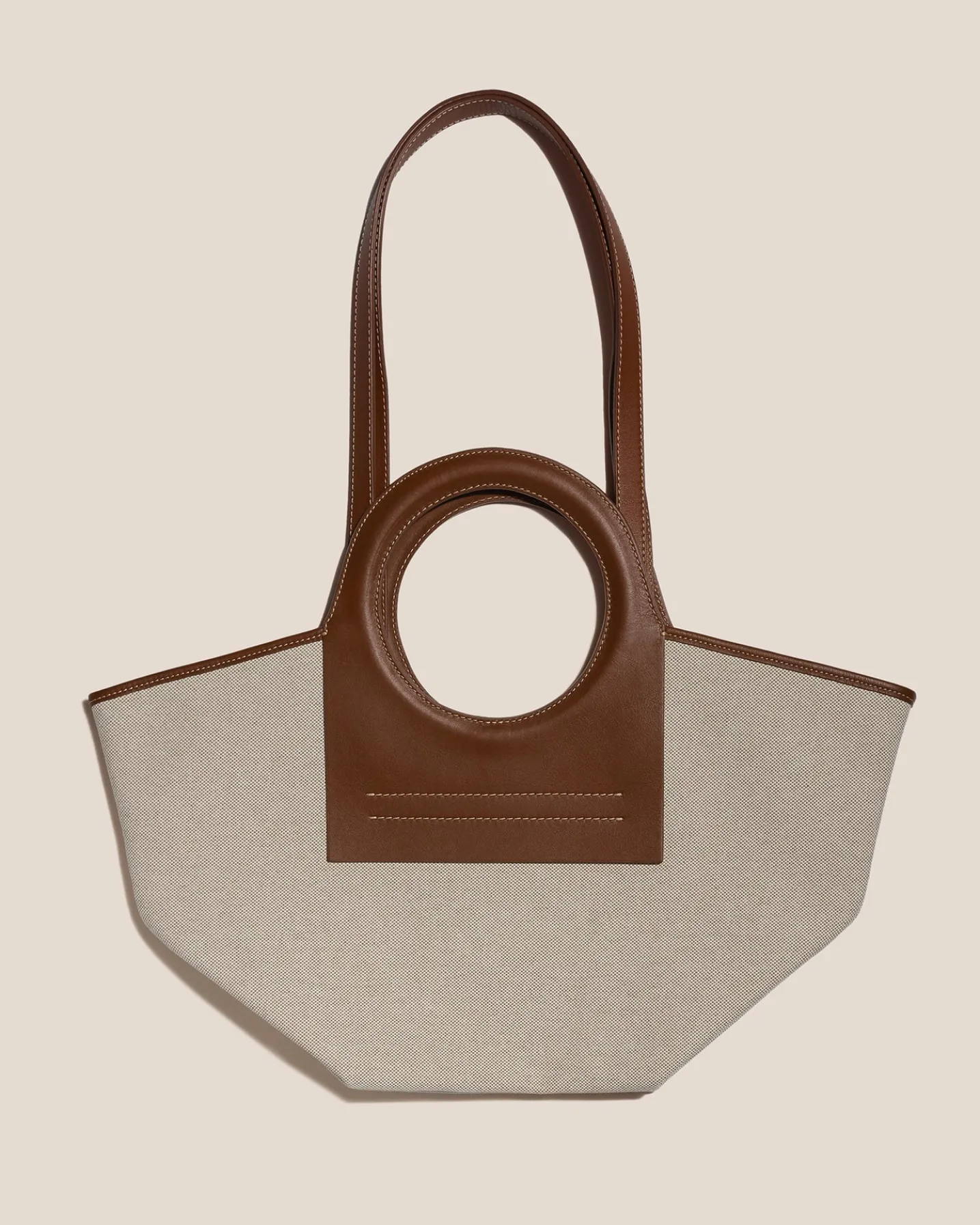 Tote bag constructed from organic textured premium canvas and trimmed with calf leather.