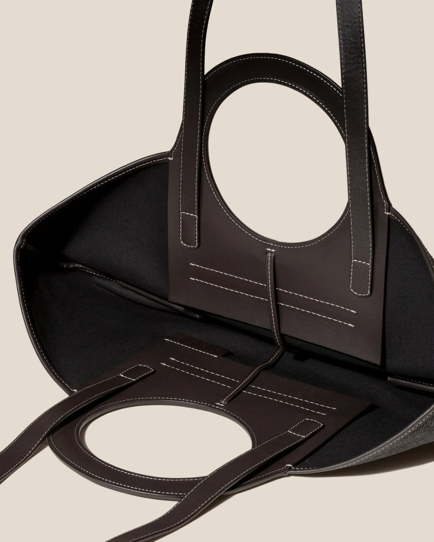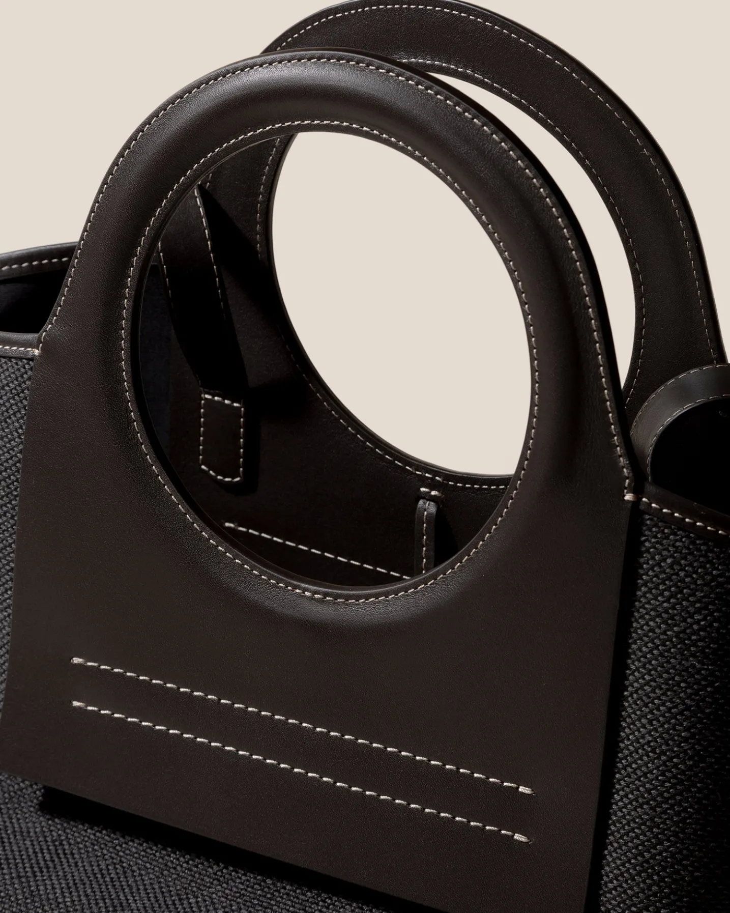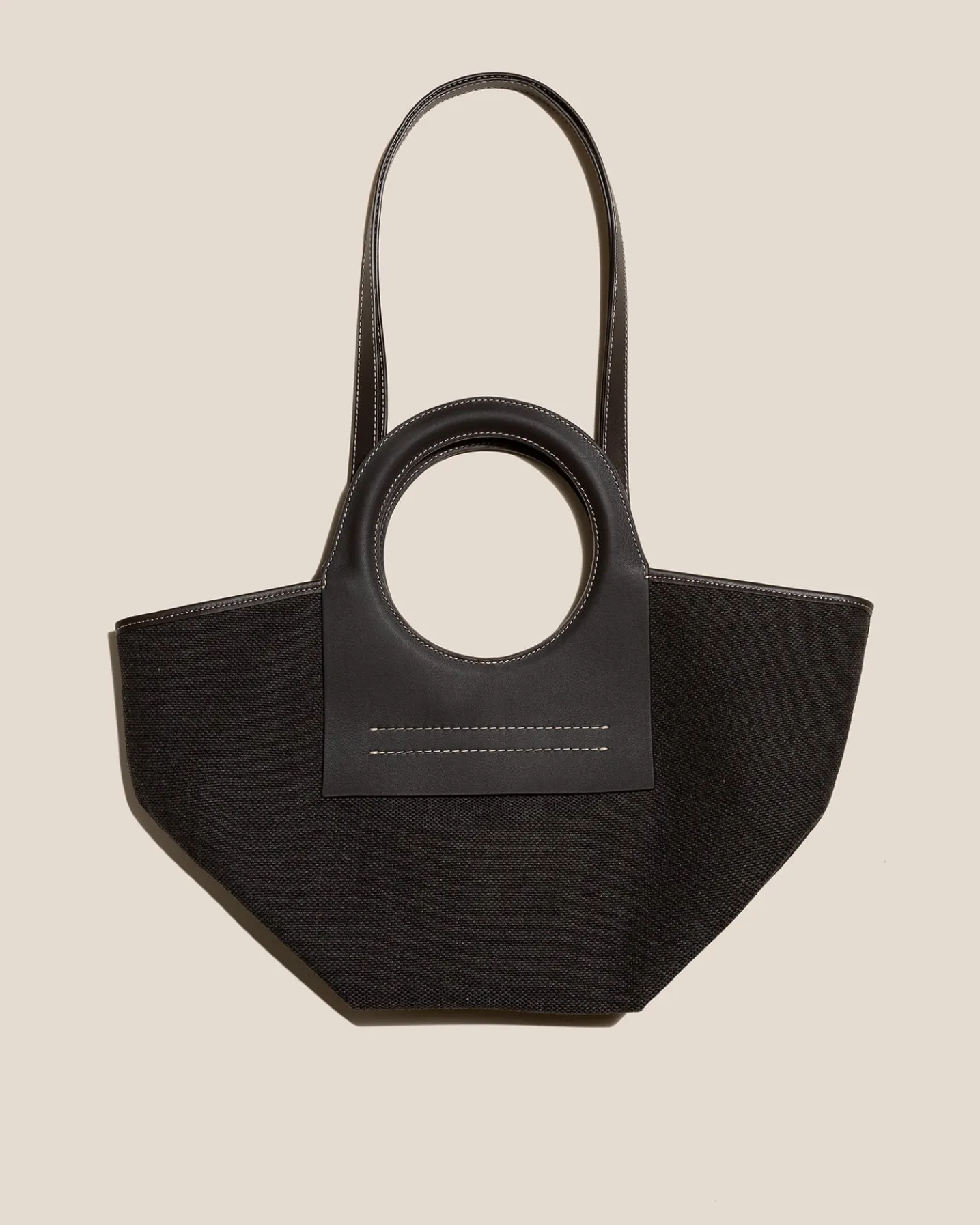 Tote bag constructed from organic textured premium canvas and trimmed with calf leather.