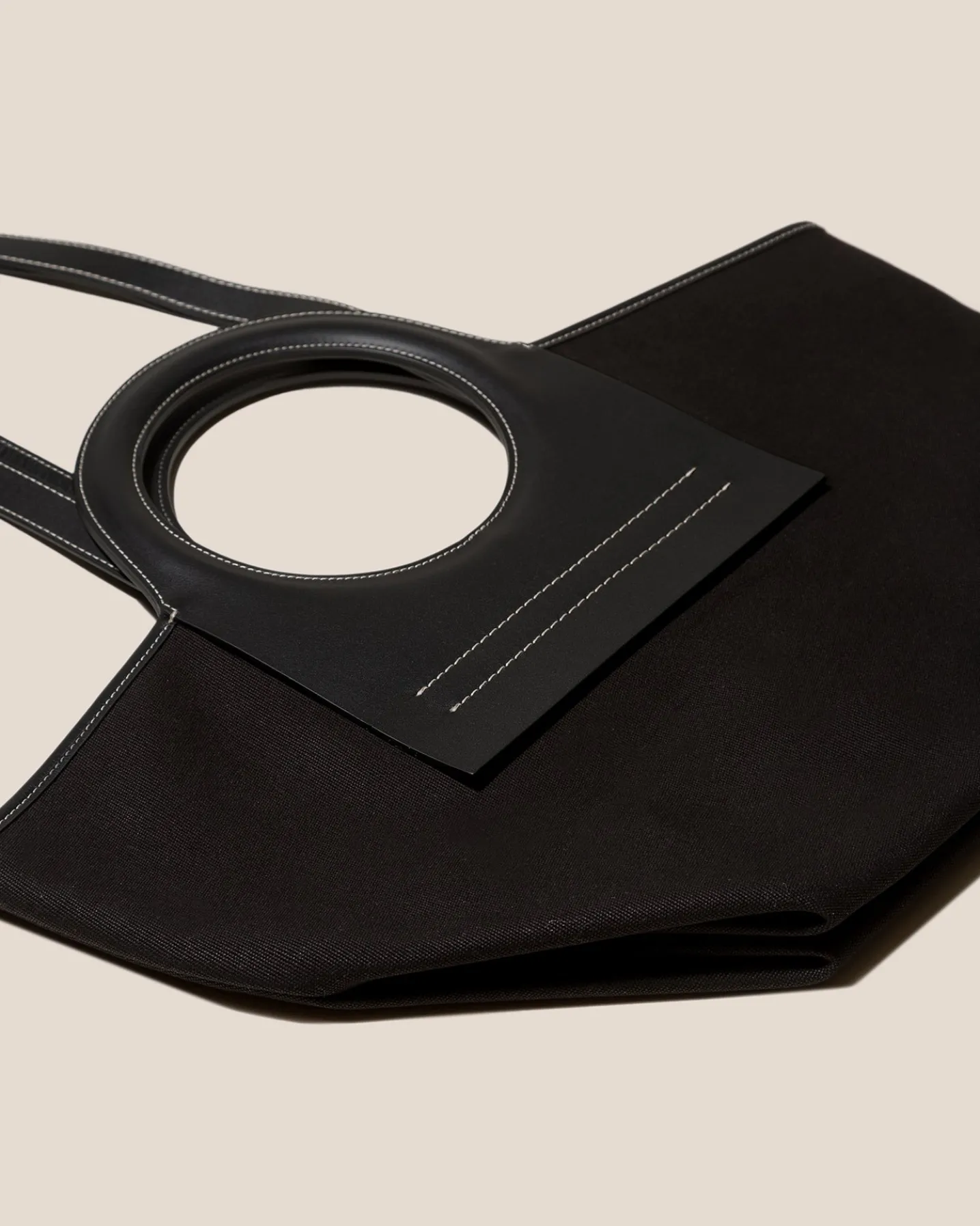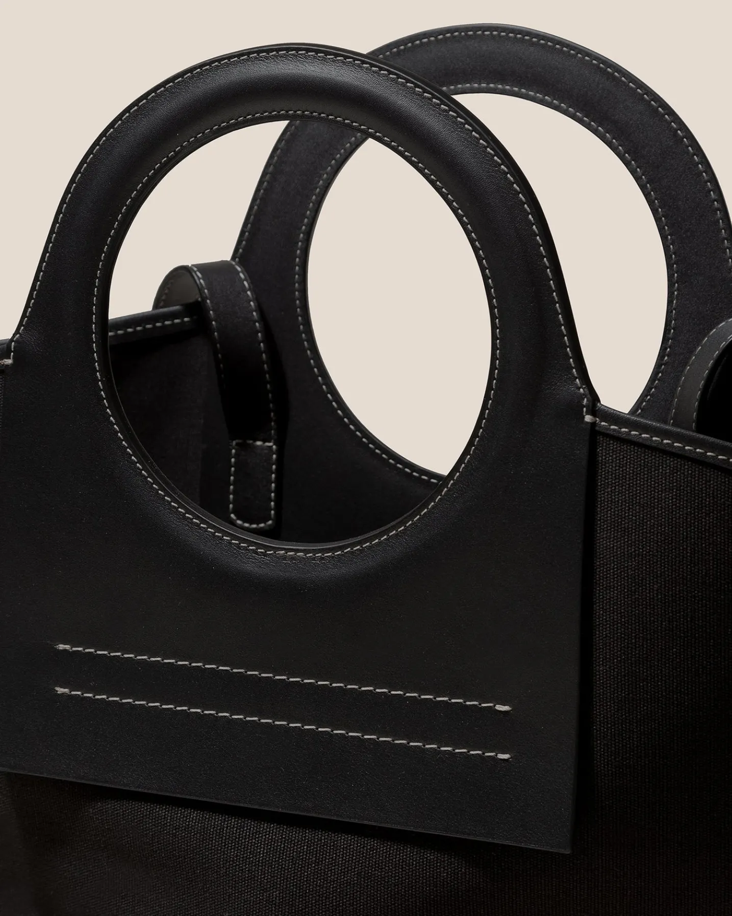 Tote bag constructed from organic textured premium canvas and trimmed with calf leather.