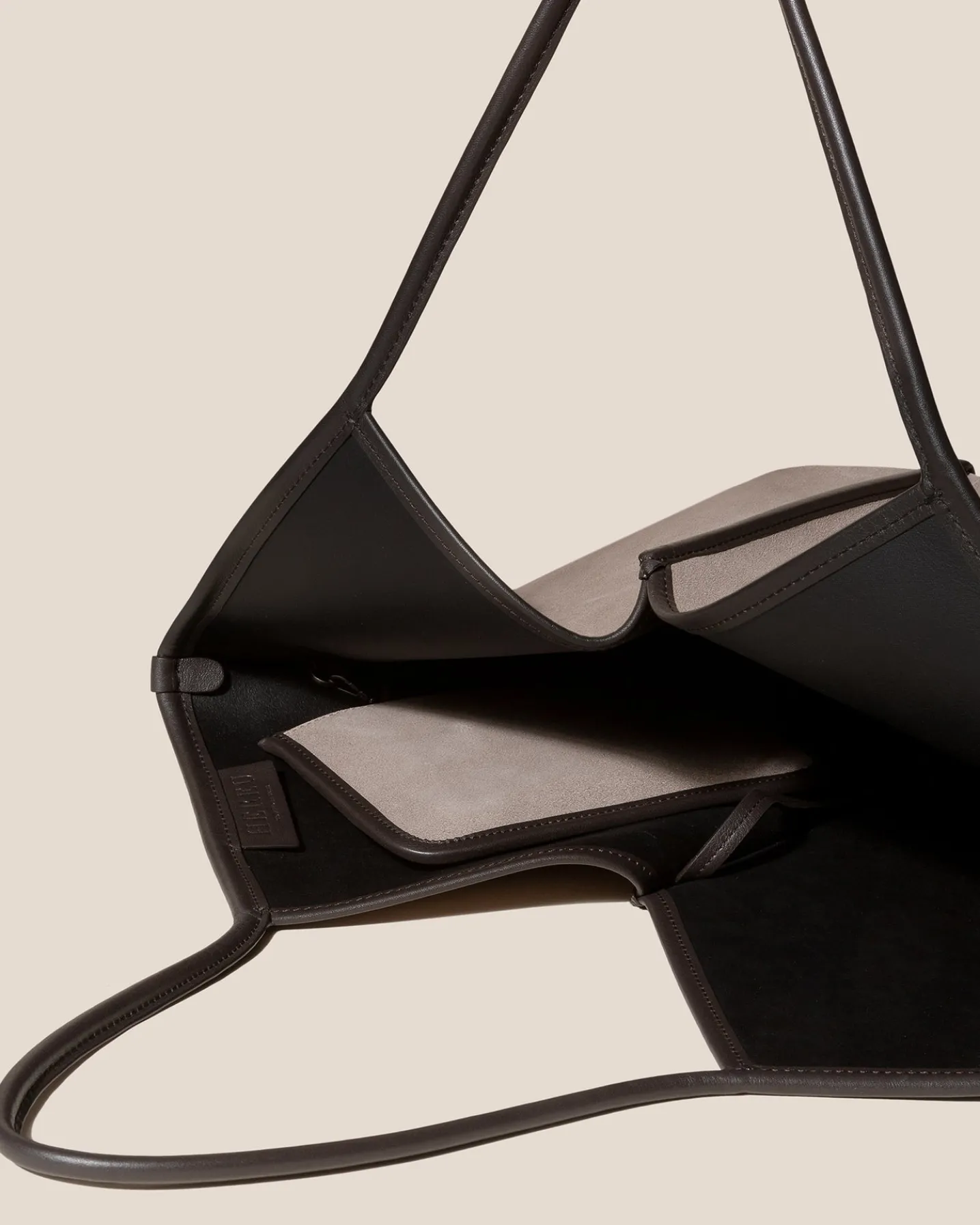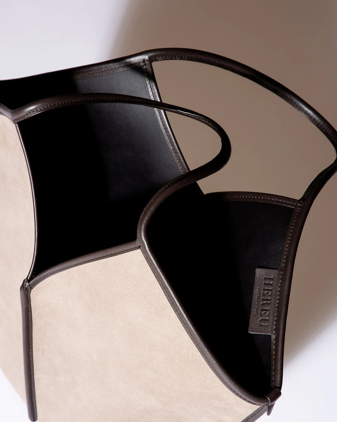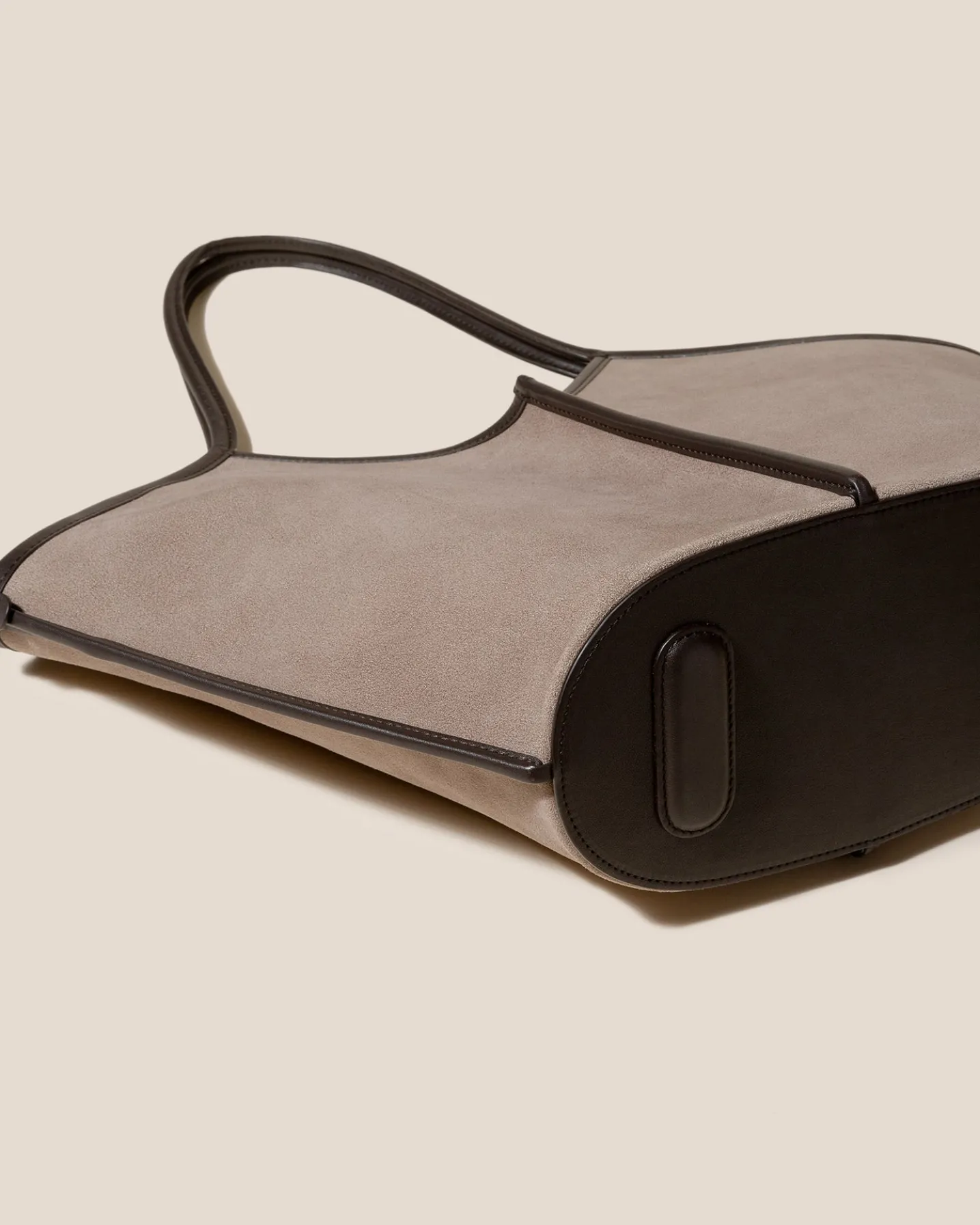 Tote crafted in unlined calf suede leather and edged with smooth calf leather. The inside is coated for extra durability.