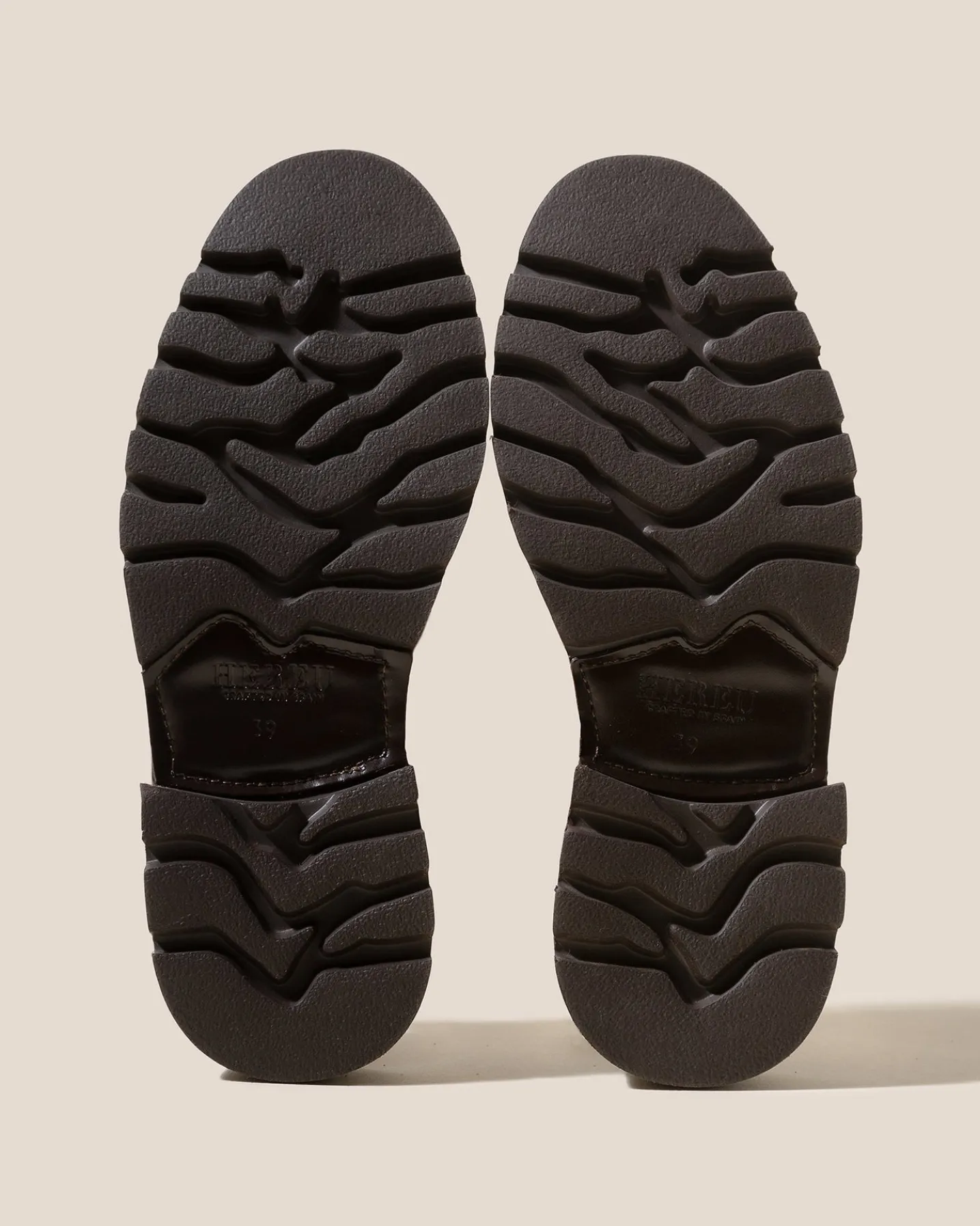 Round-toe fisherman clog sandal crafted in full grain double-faced calf suede.