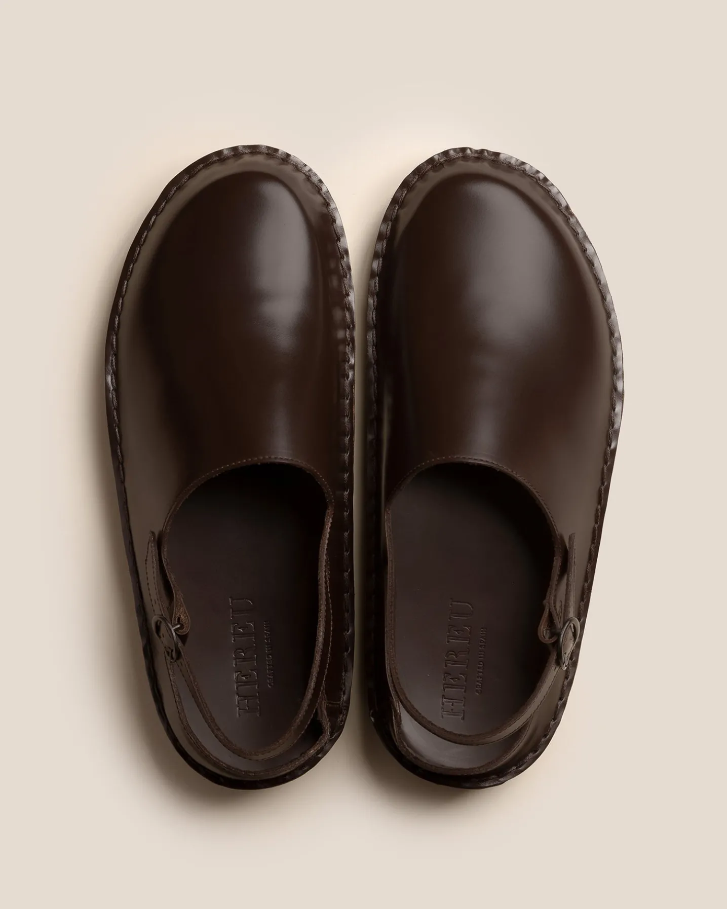Slingback clog with whipstitch detail constructed on a lightweight wedge.