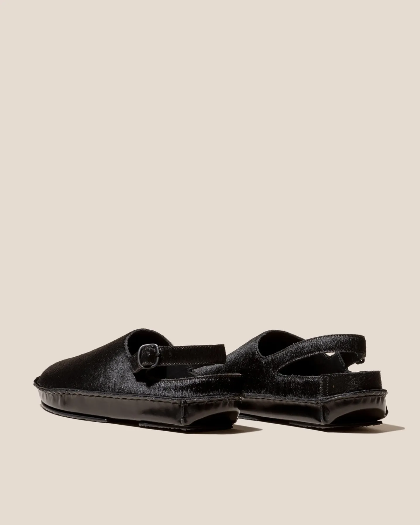 Slingback clog with whipstitch detail, crafted in calf hair and structured calf leather.