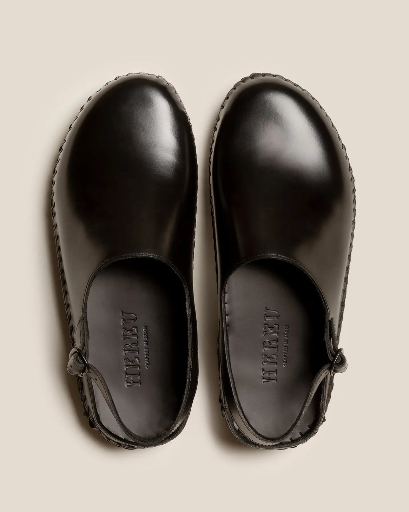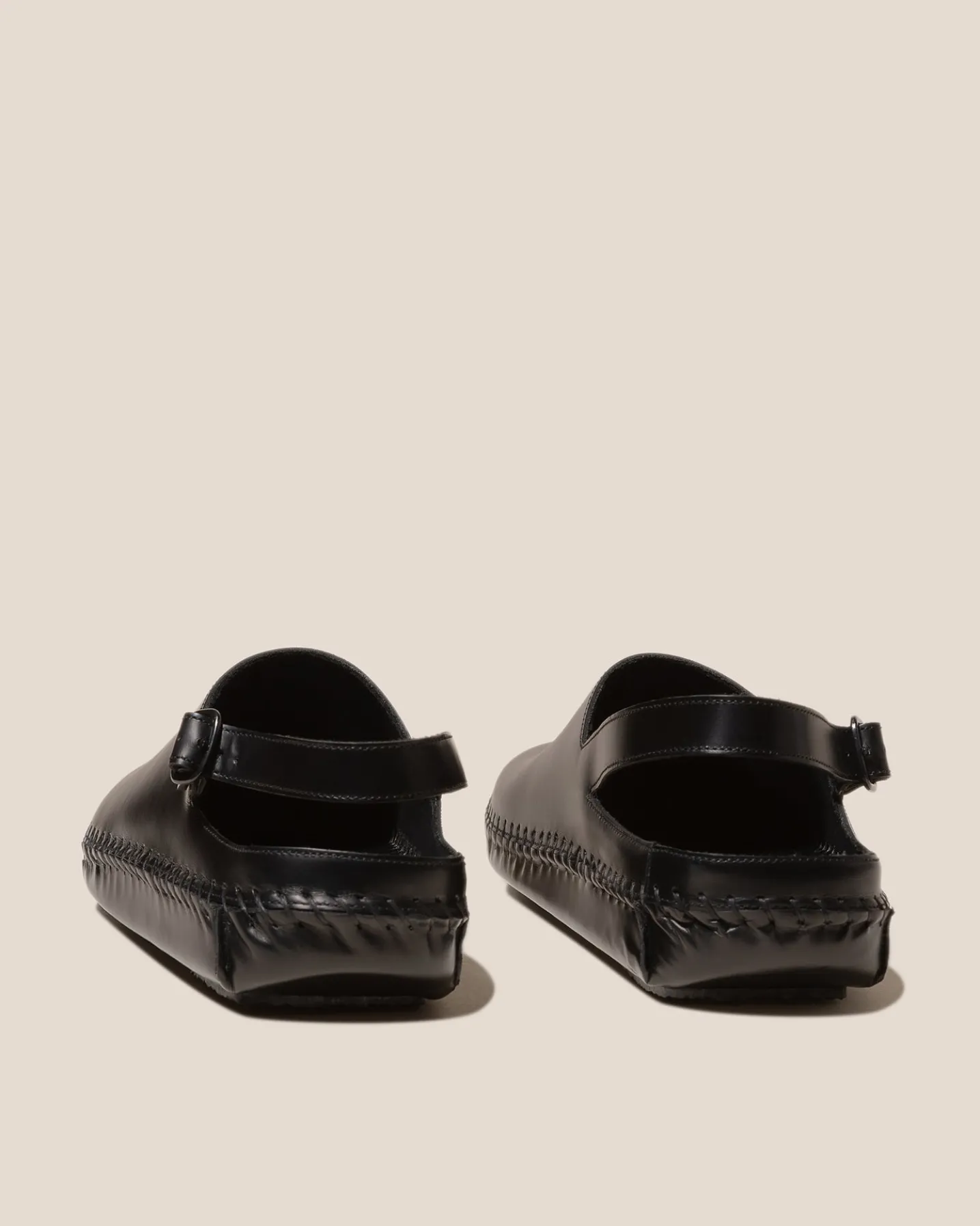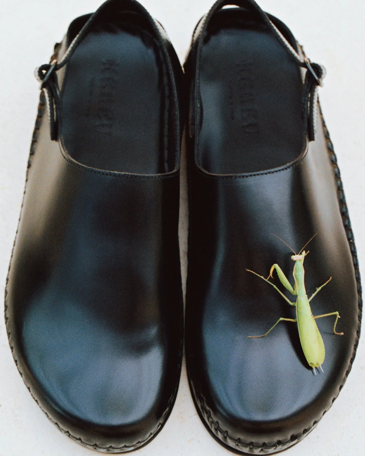 Slingback clog with whipstitch detail constructed on a lightweight wedge.