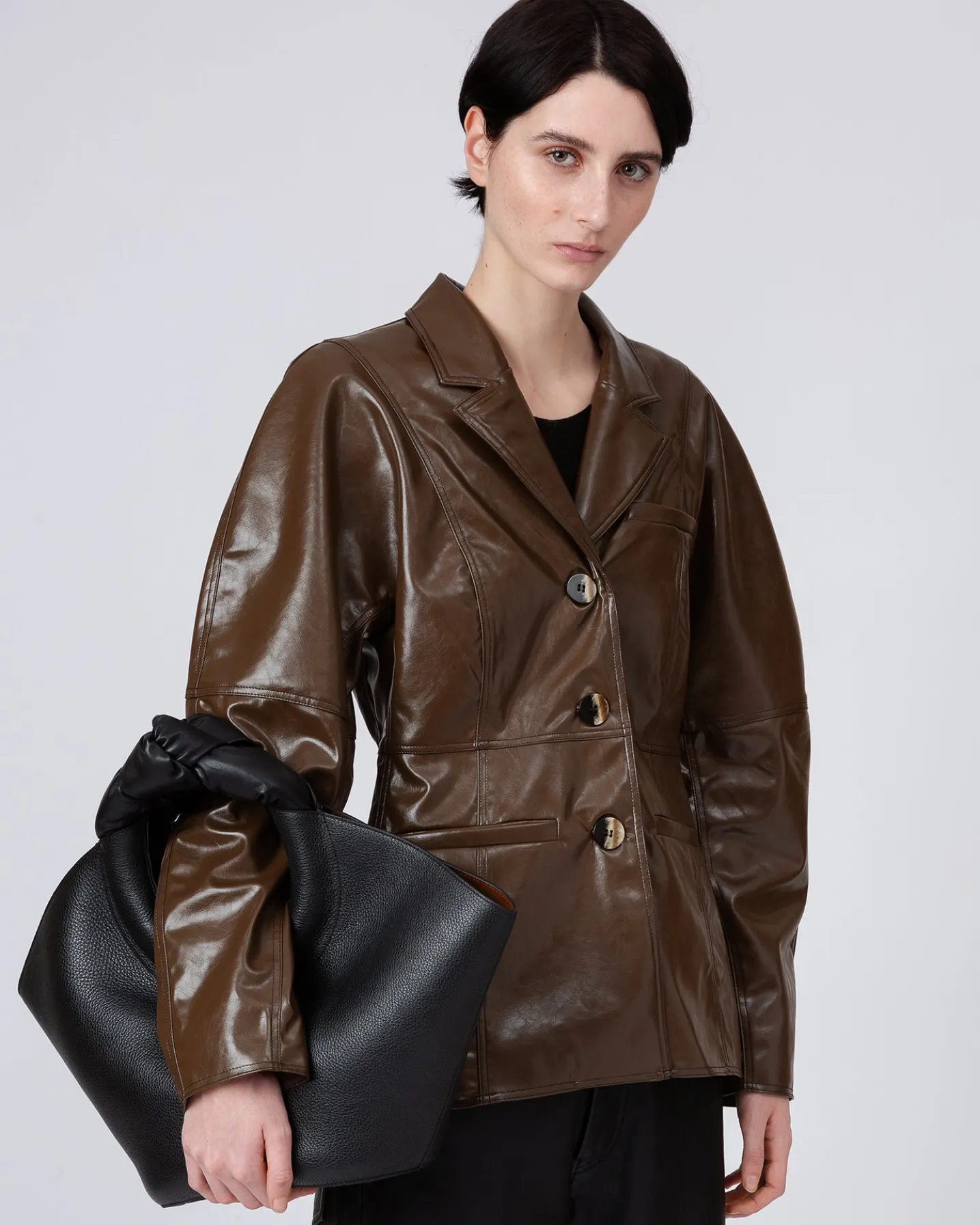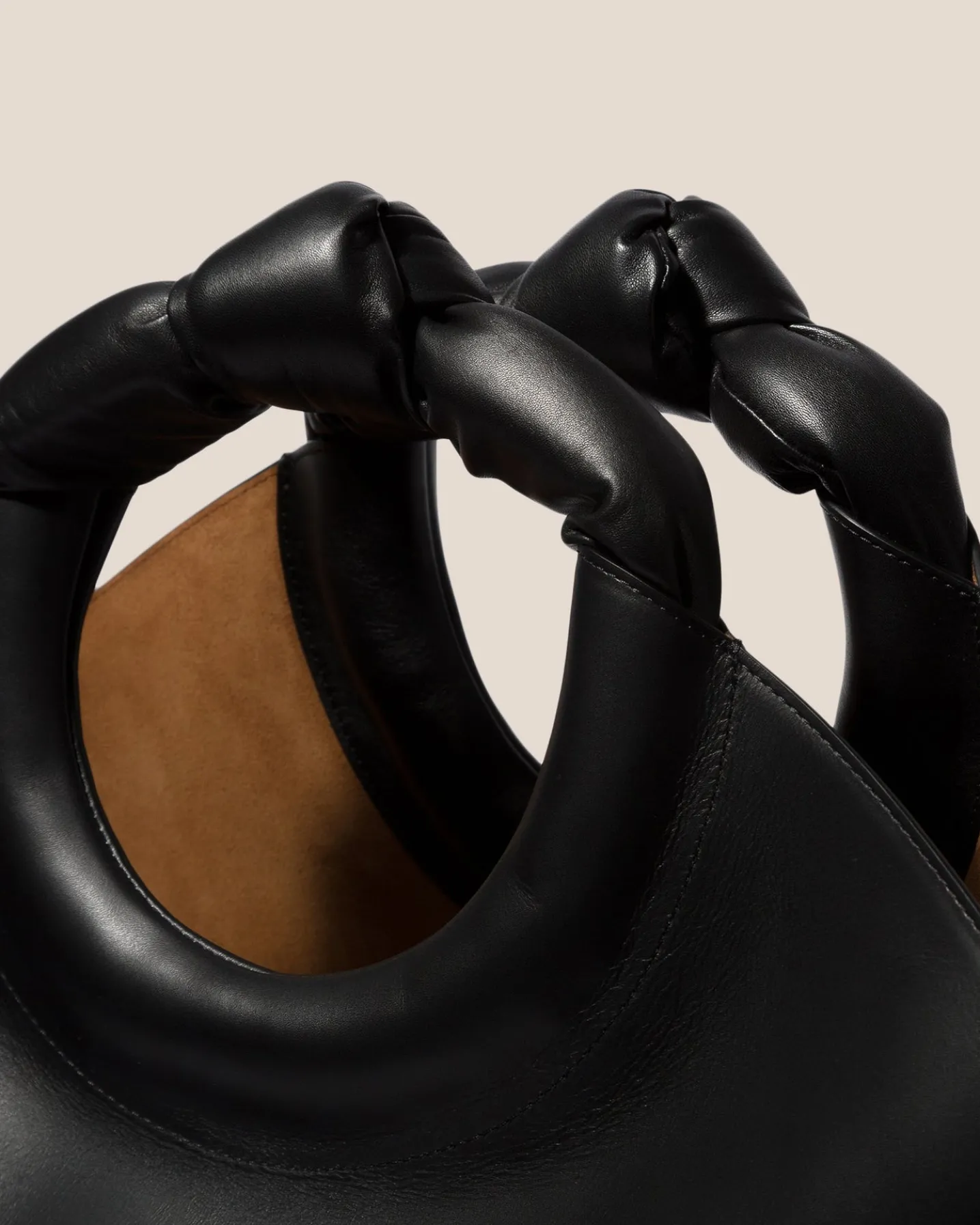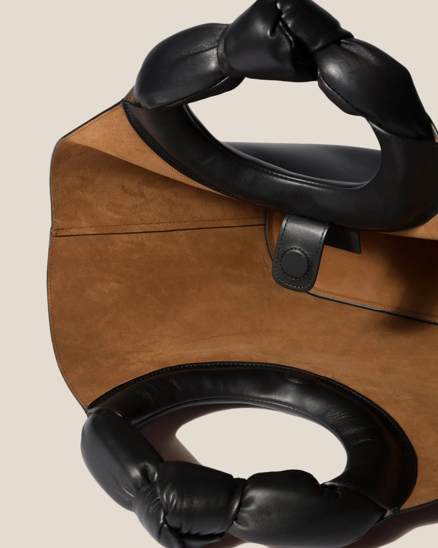 Knotted-handle basket tote crafted in Spanish calf leather with calf leather lining.