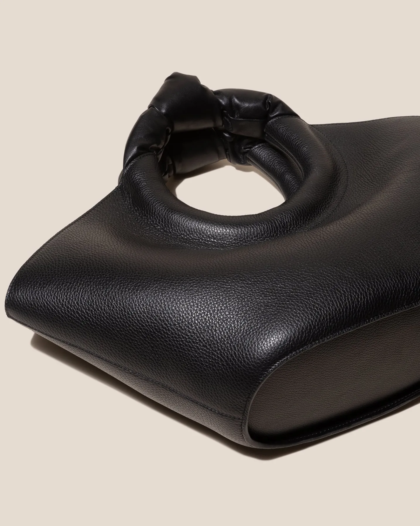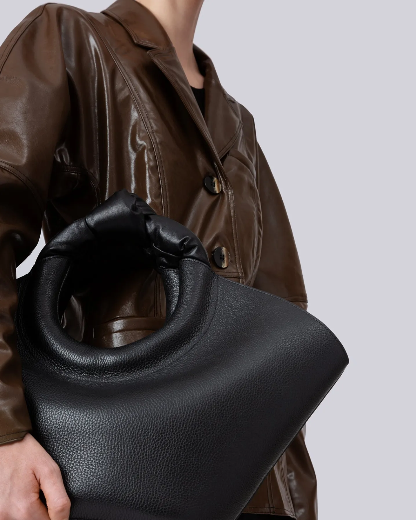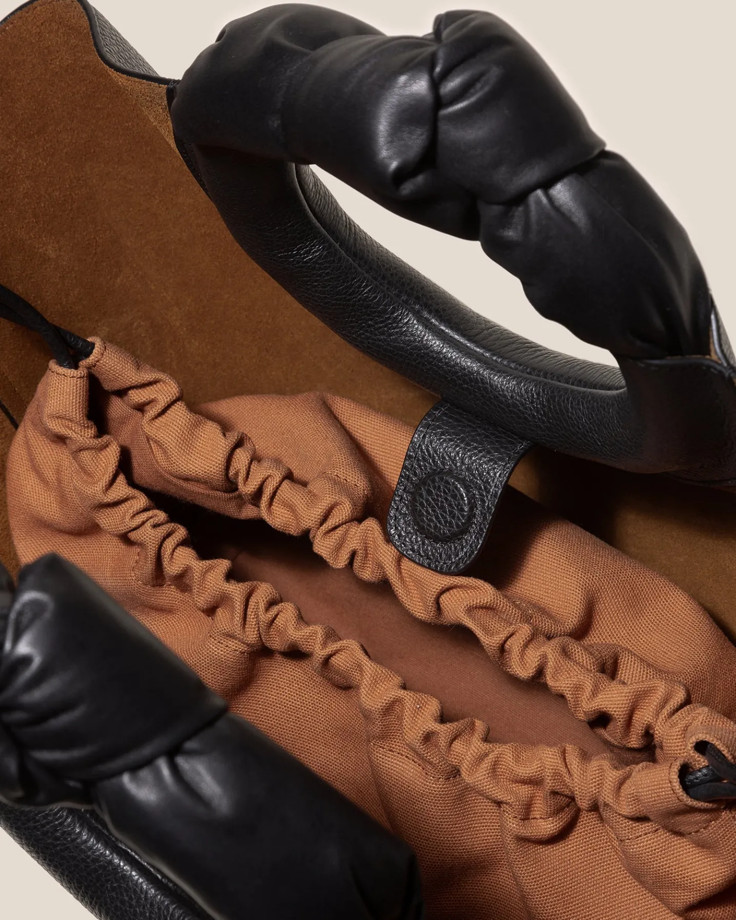 Knotted-handle basket tote crafted in Spanish grainy calf leather with calf leather lining.