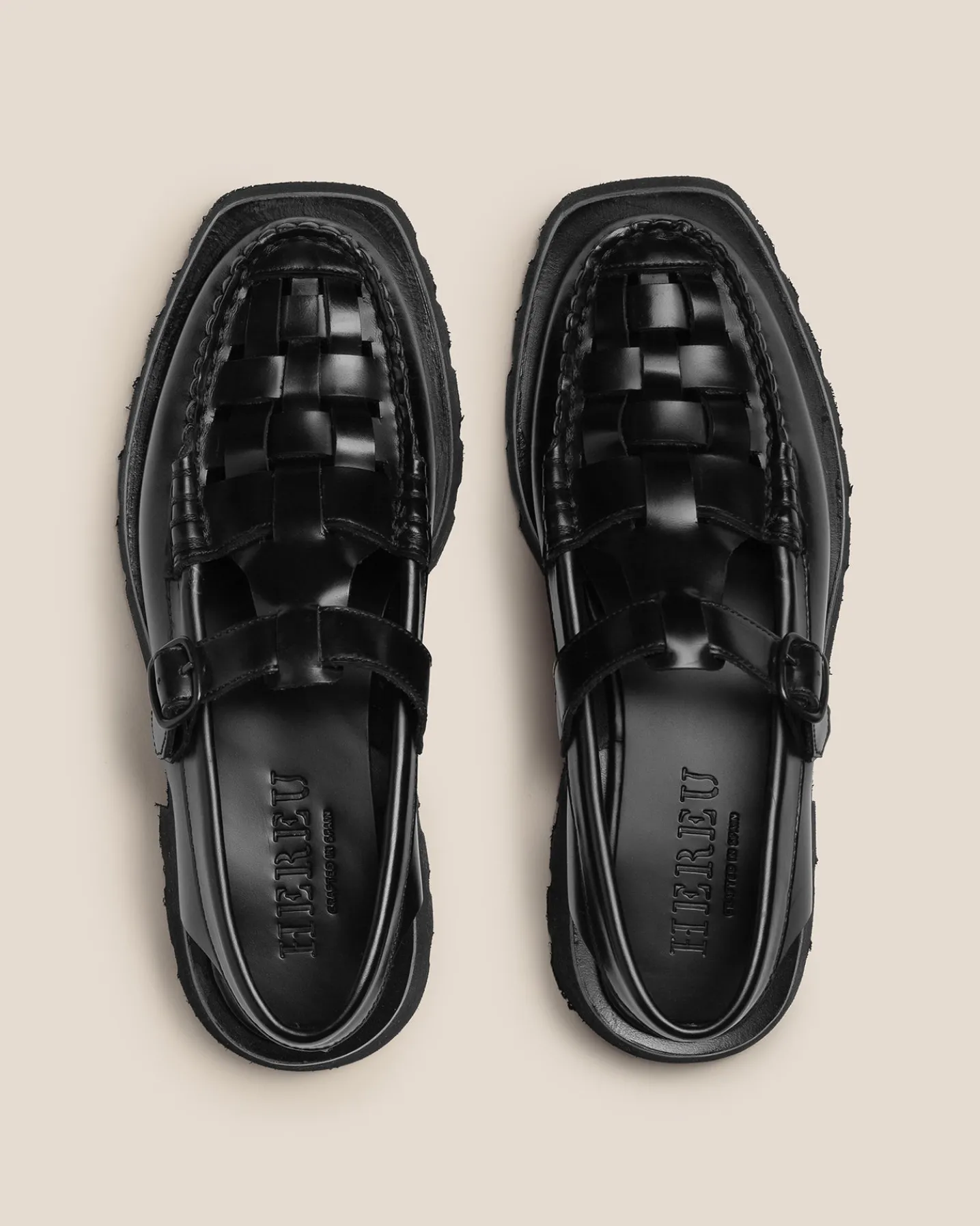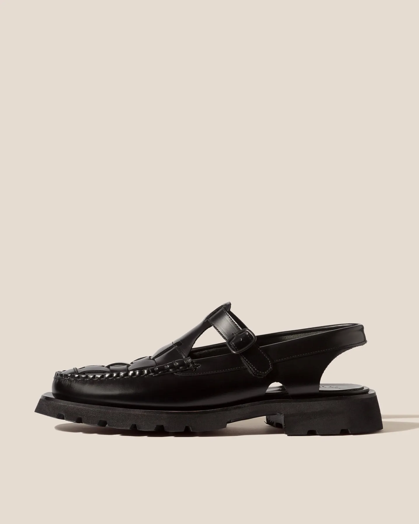 Slingback t-bar loafer with interwoven front detail, crafted in Spanish full grain calf leather. Hand-sewn using the traditional moccasin construction