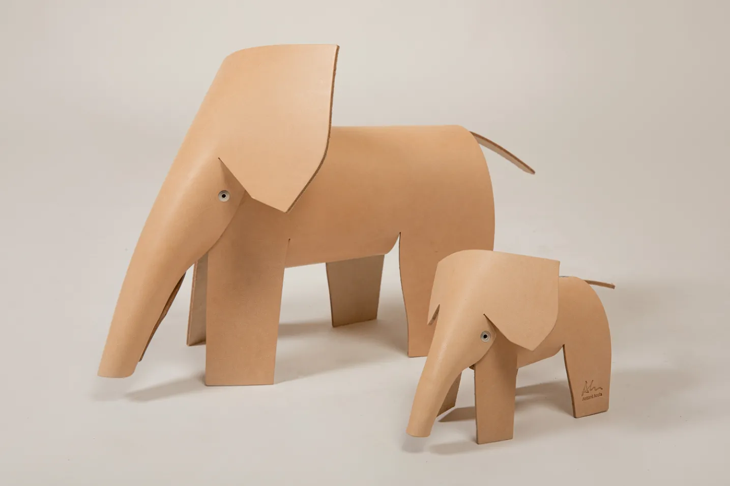 Elefanta Maria was created without previous measures or decisions. Natural untreated leather, scissors and rivets.