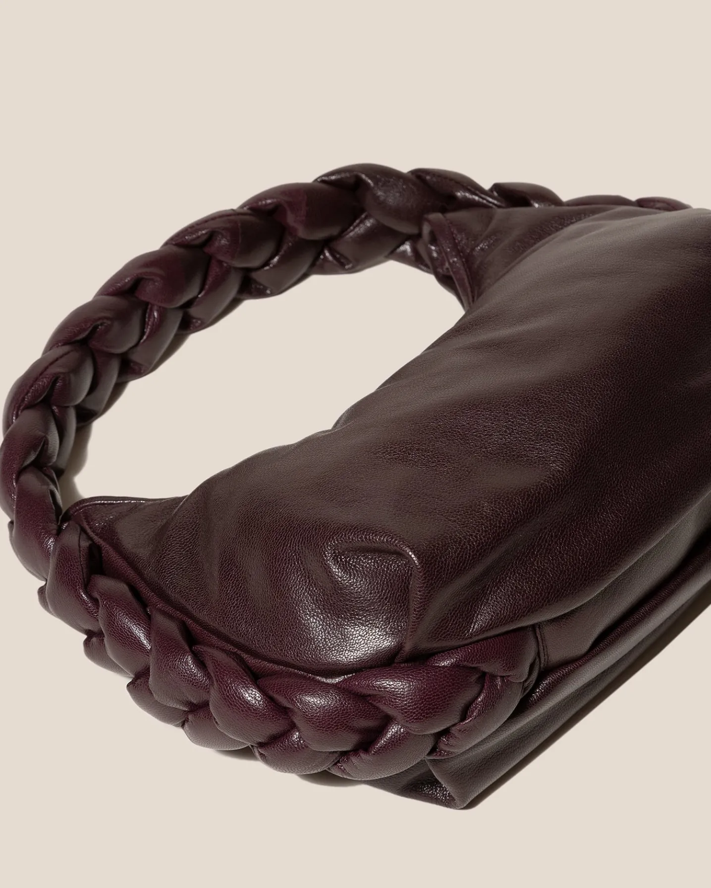Ultra-soft shoulder bag with plaited padded detail, crafted in supple shiny lambskin.