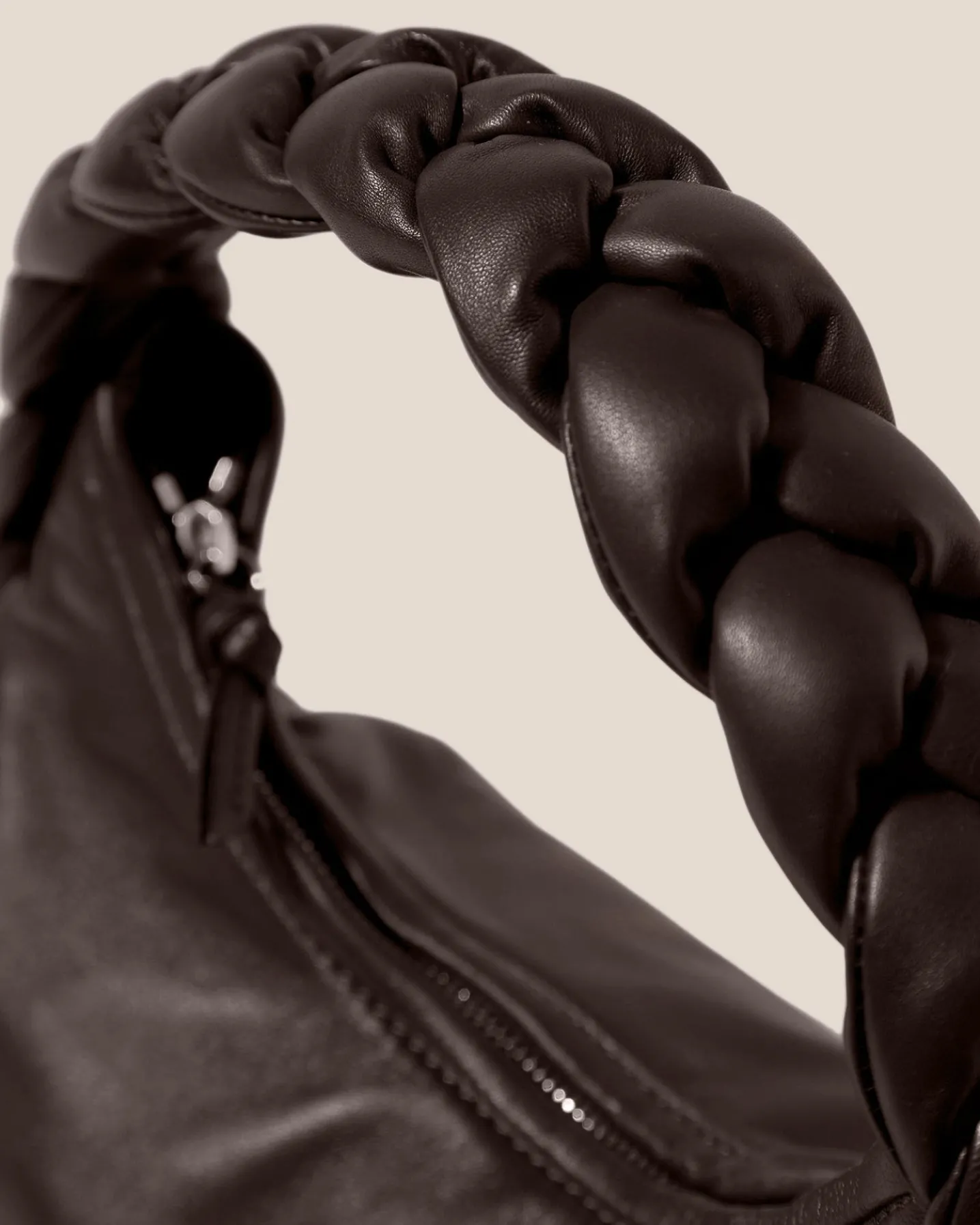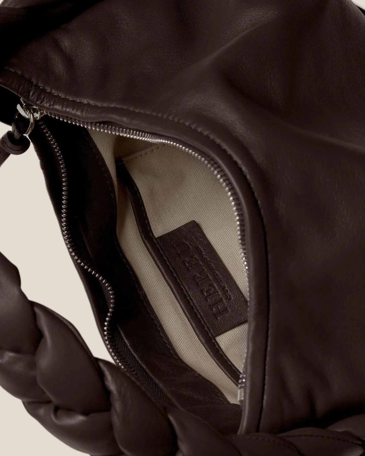 Ultra-soft shoulder bag with plaited padded detail, crafted in supple lambskin and lined with organic cotton canvas.
