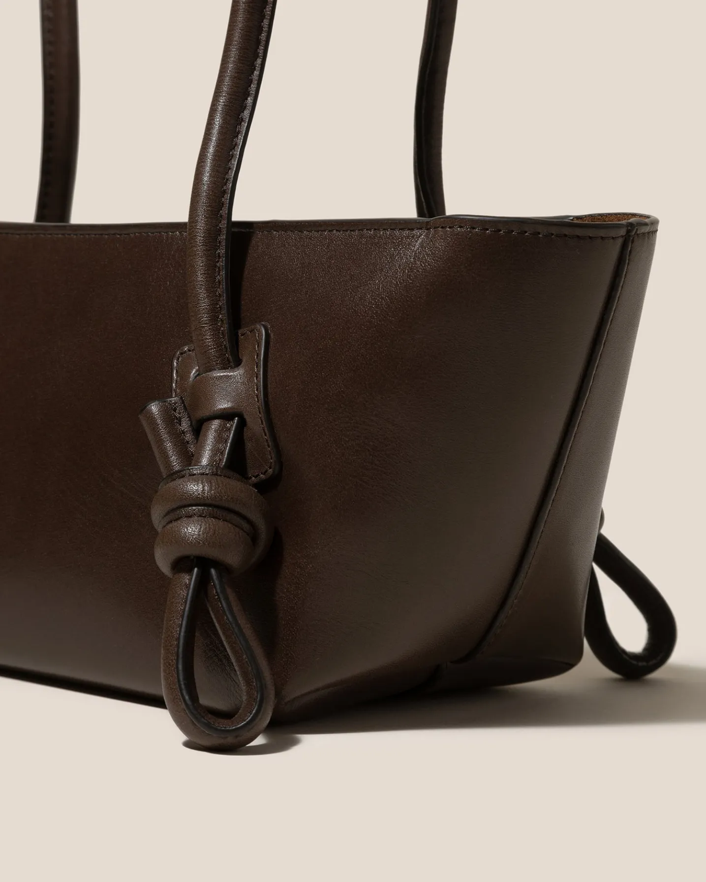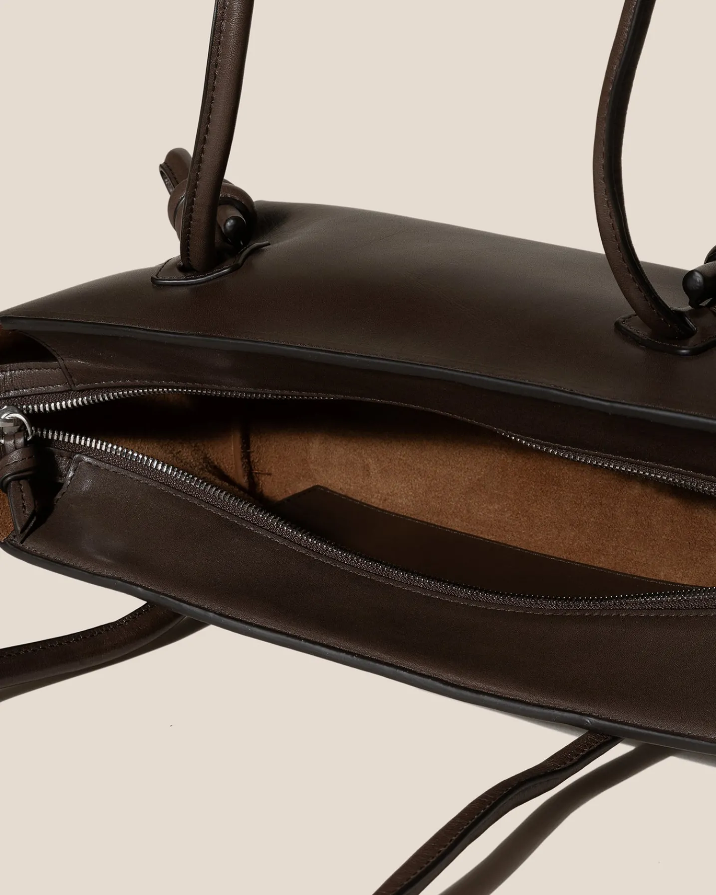 Baguette shoulder bag with knotted handle detail, crafted in polished Italian calf leather and lined with calf suede.