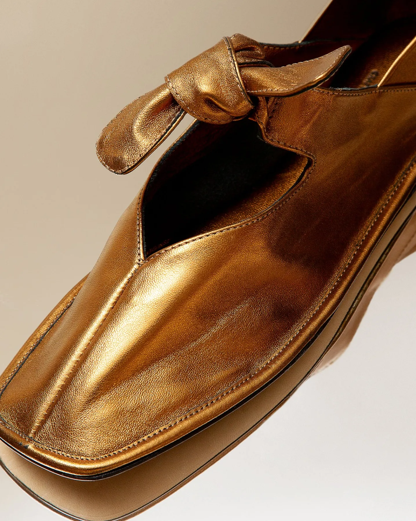 Square toe pump with bow detail, crafted in ultrasoft lambskin.
