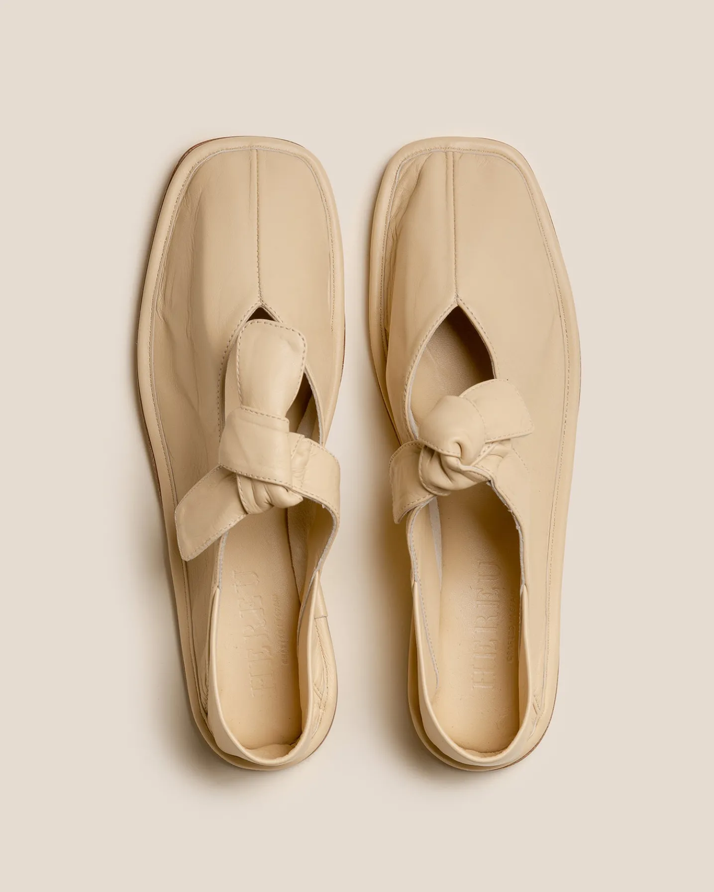 Square toe pump with bow detail, crafted in ultrasoft lambskin.