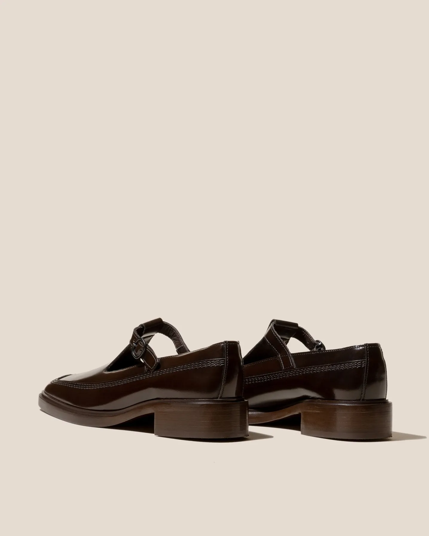 T-Bar shoe crafted in polished structured calf leather.