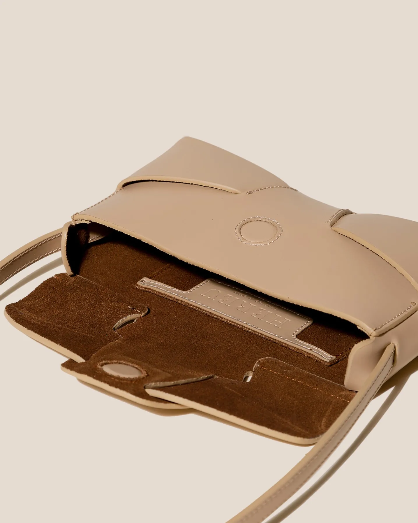 Mini crossbody bag with woven detail in Spanish structured calf leather and lined in calf suede.
