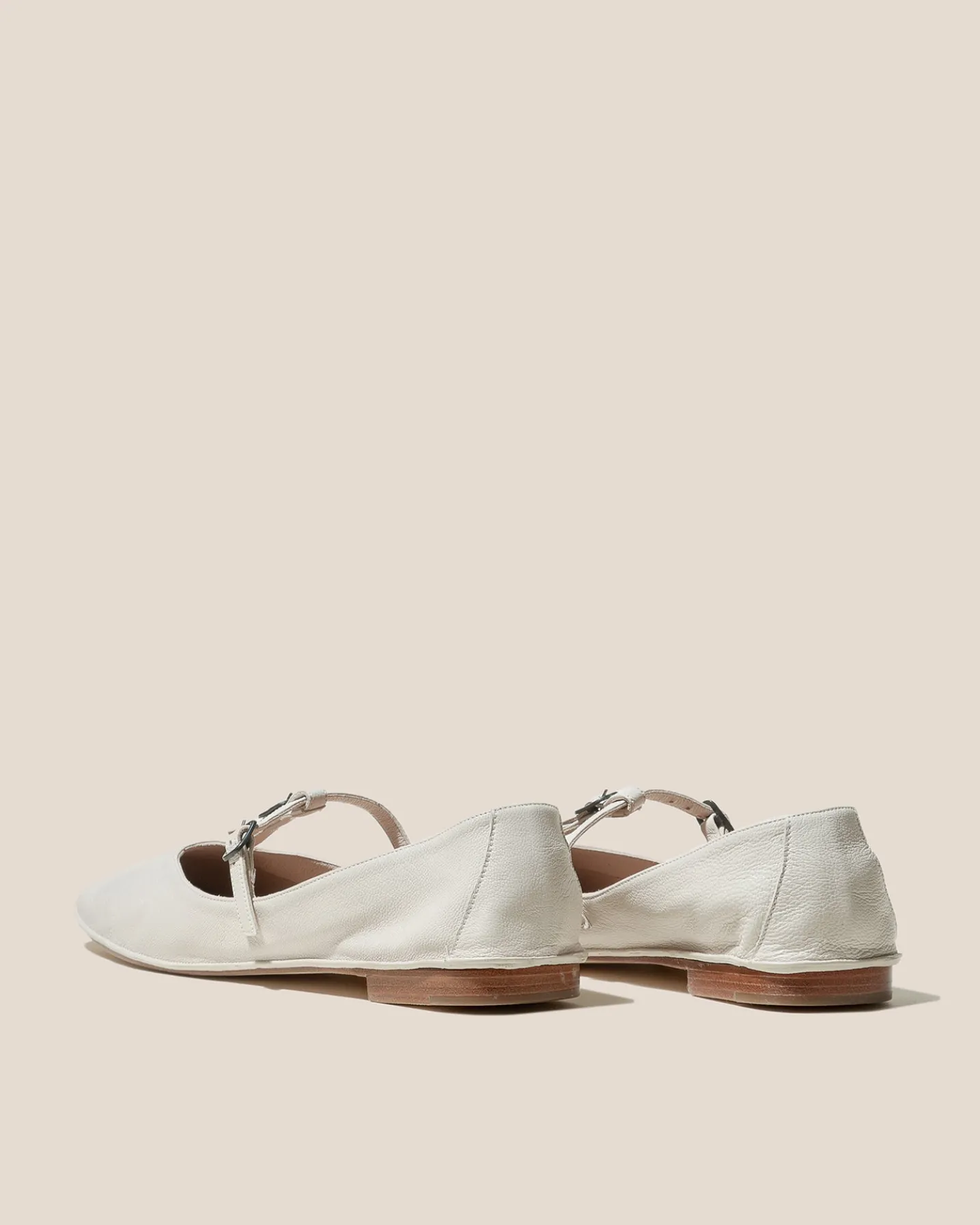 Soft T-bar with buckle detail, crafted in supple shiny lambskin.