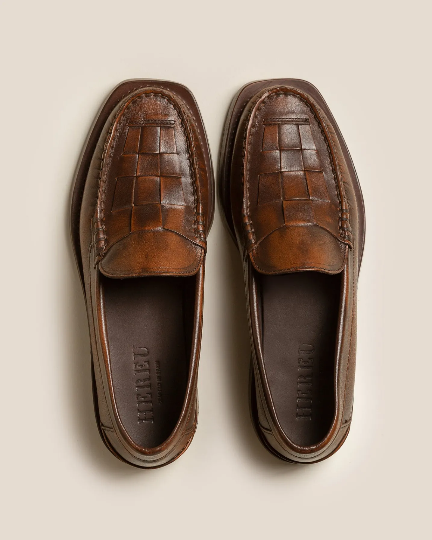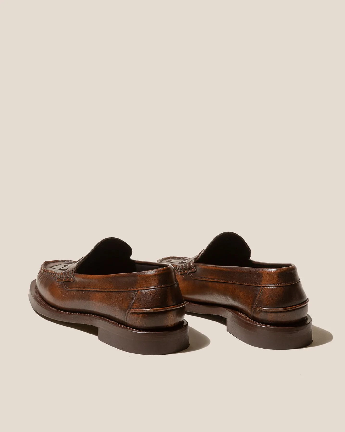 Slip-on loafer with interwoven front detail, crafted in duotone brushed calf leather.