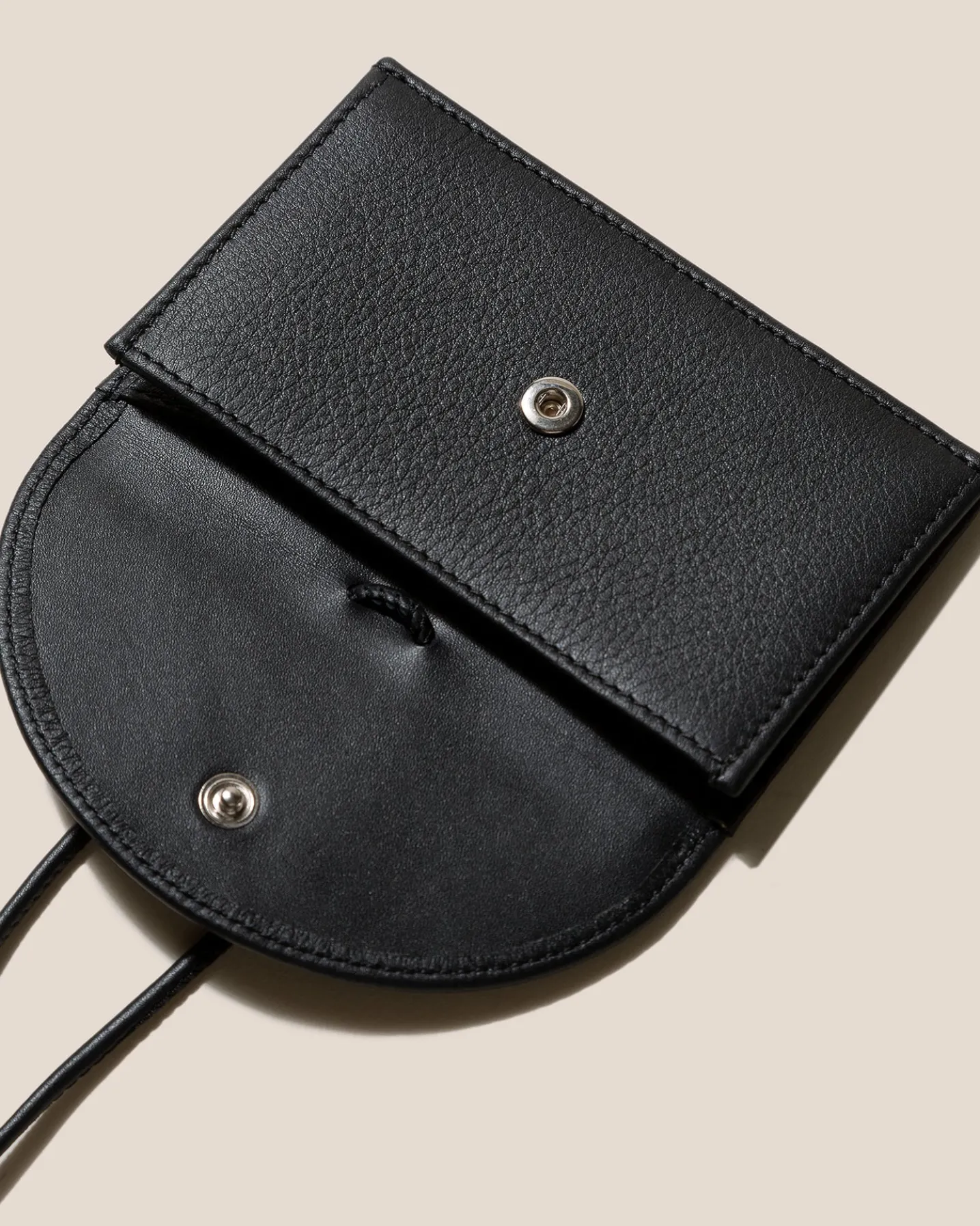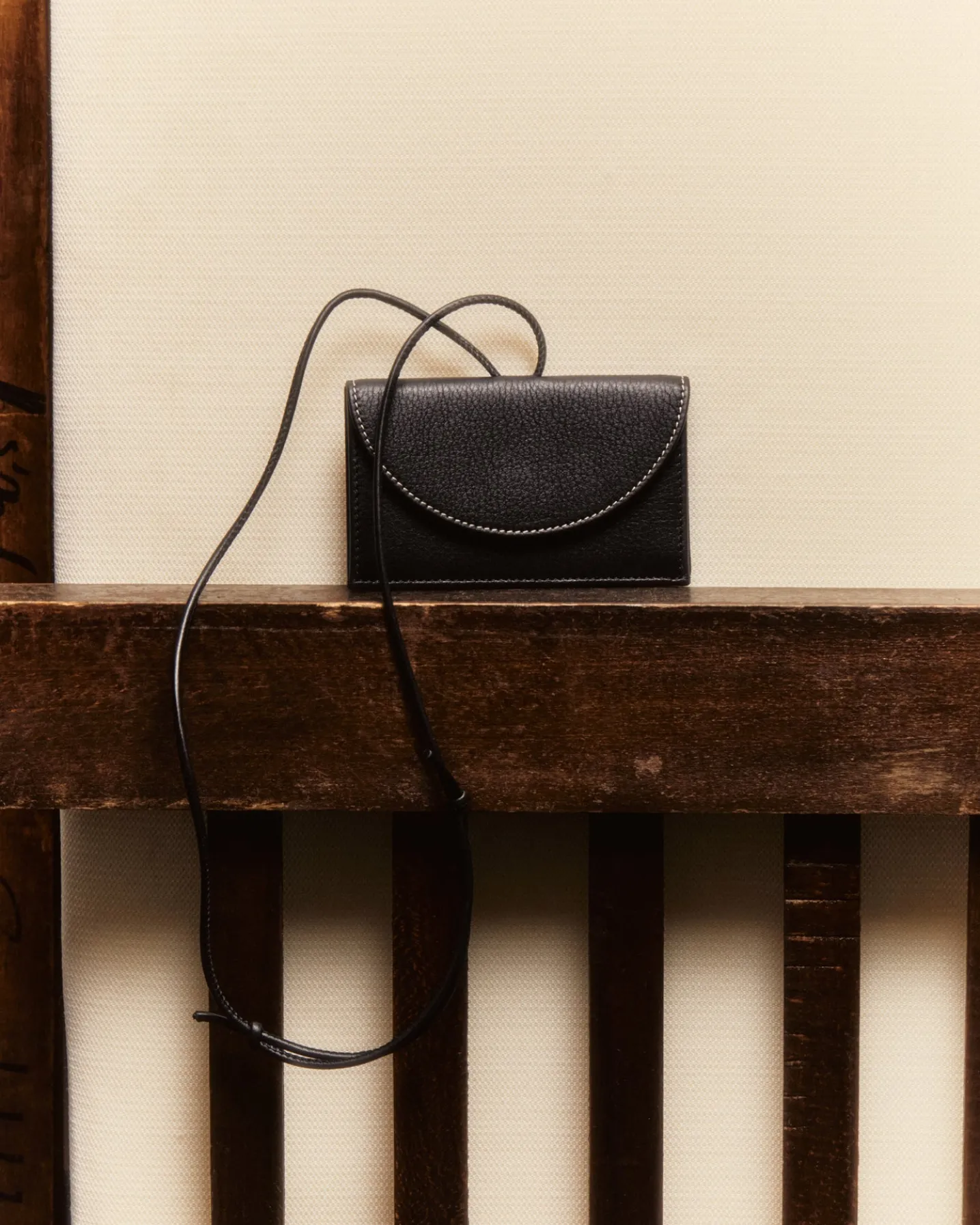 Coin purse and card holderwallet with adjustable strap crafted in calf leather.