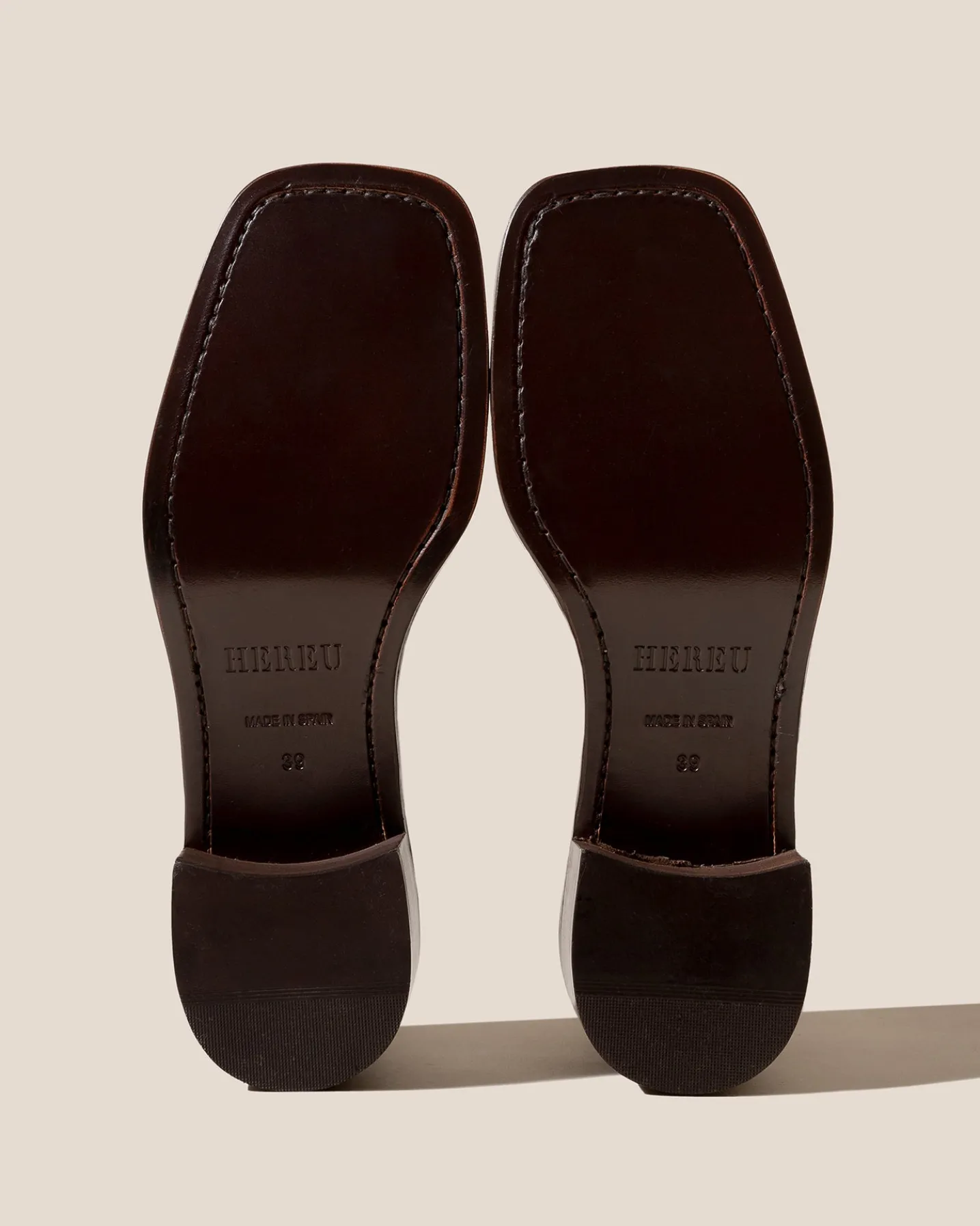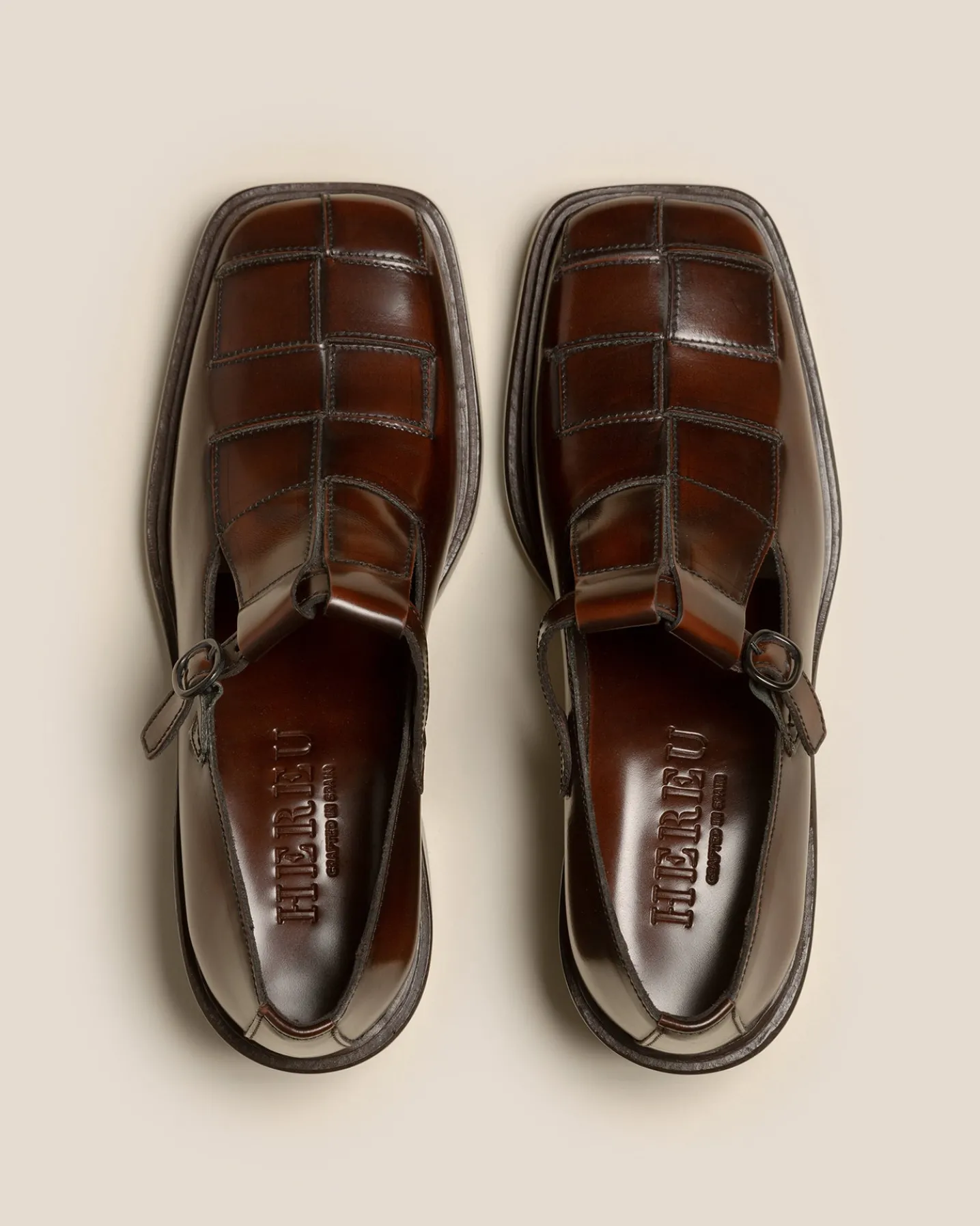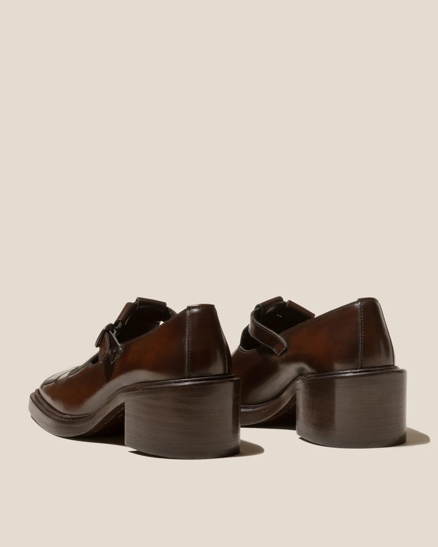 Interwoven T-bar heeled shoe crafted in Spanish brushed leather.