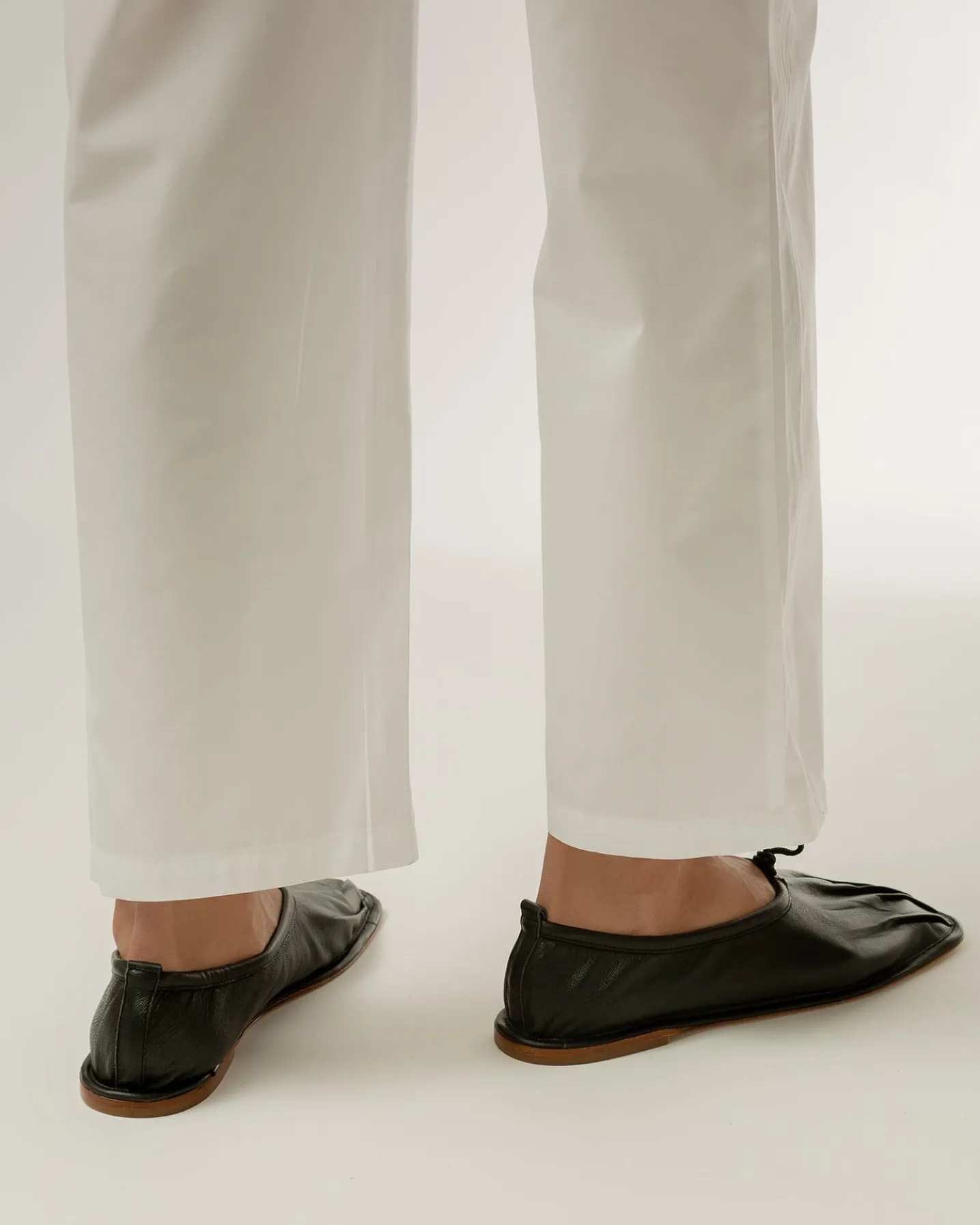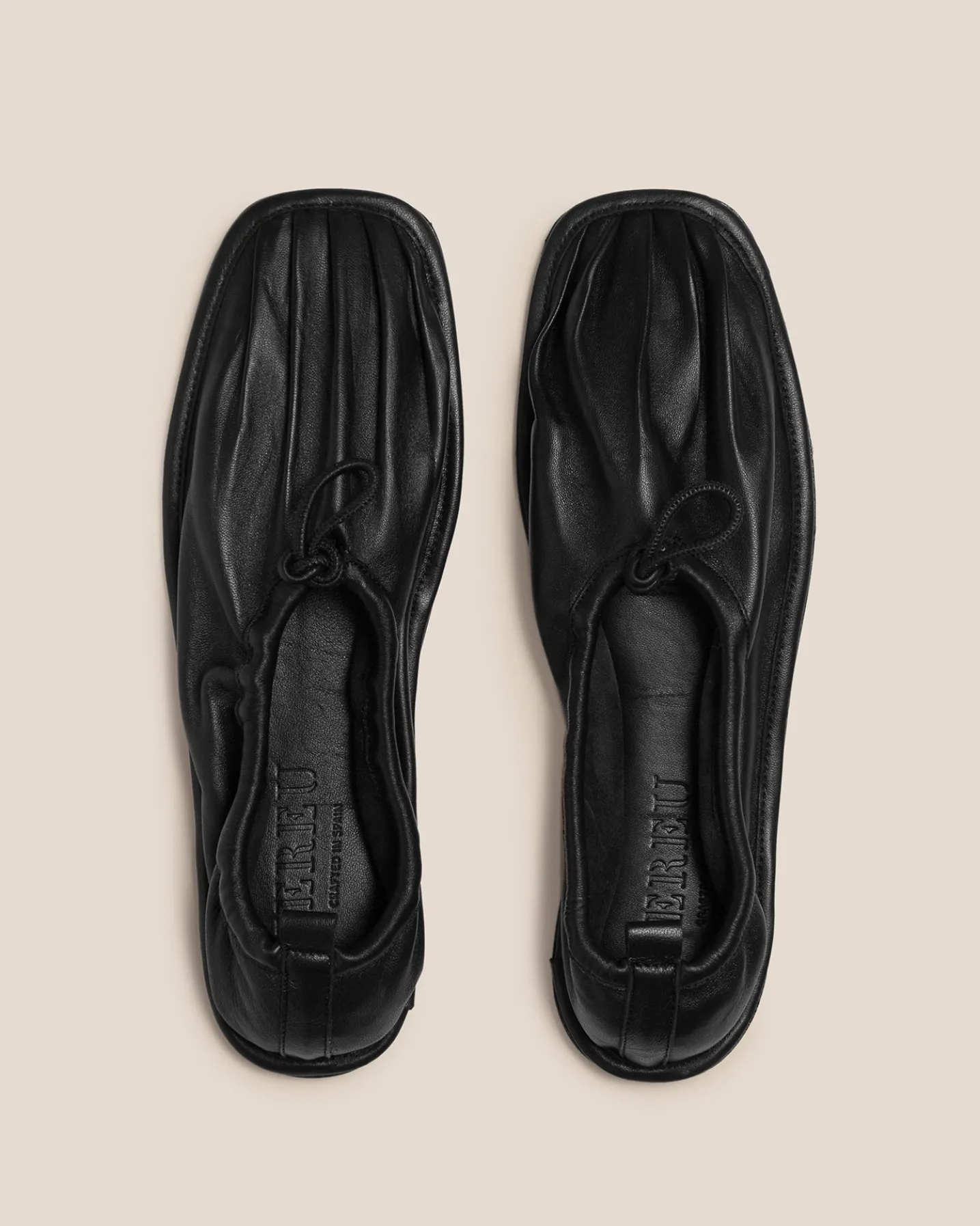 Square-toe pump with pleated toe detail, crafted in unlined soft lambskin.