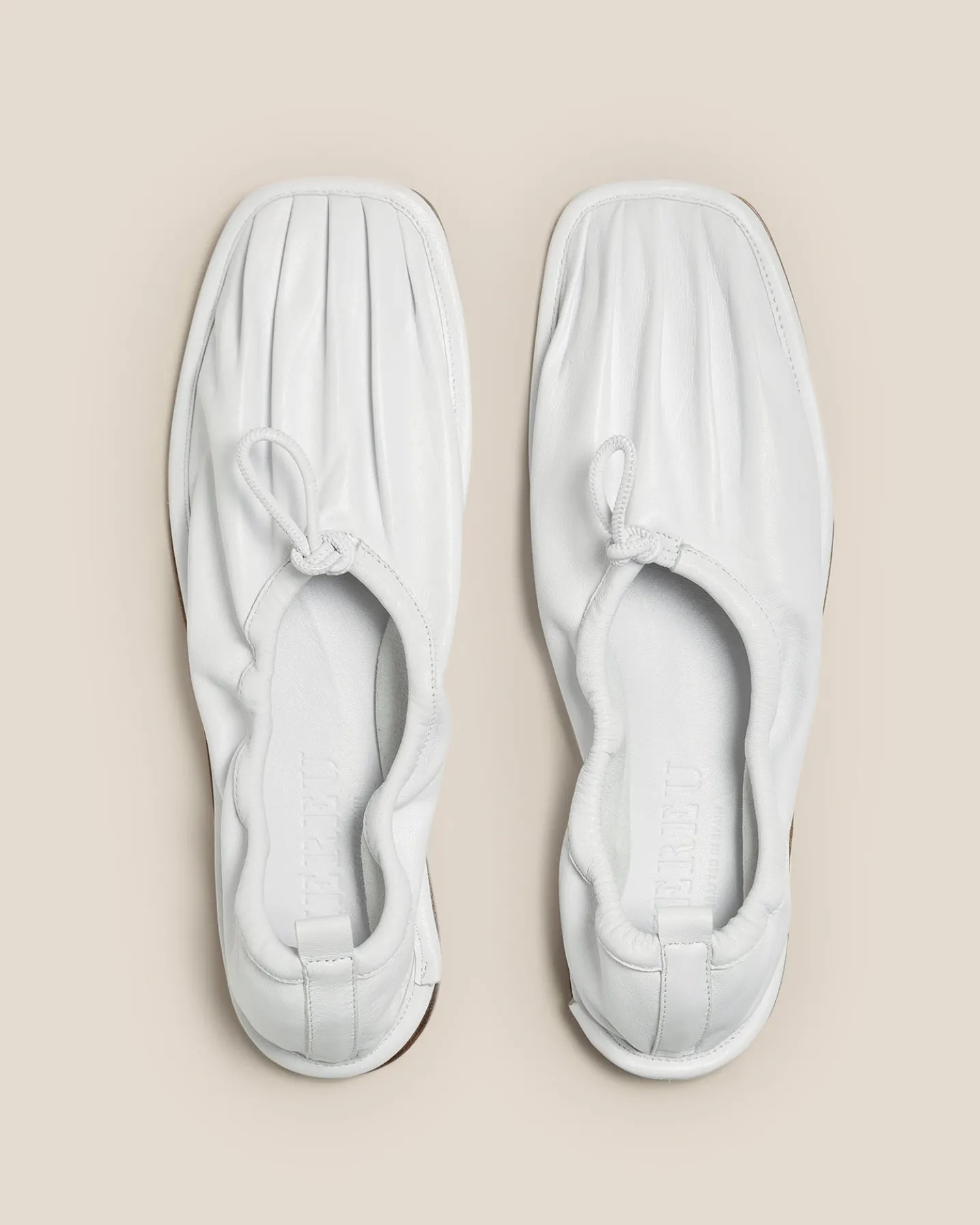 Square-toe pump with pleated toe detail, crafted in unlined soft lambskin.