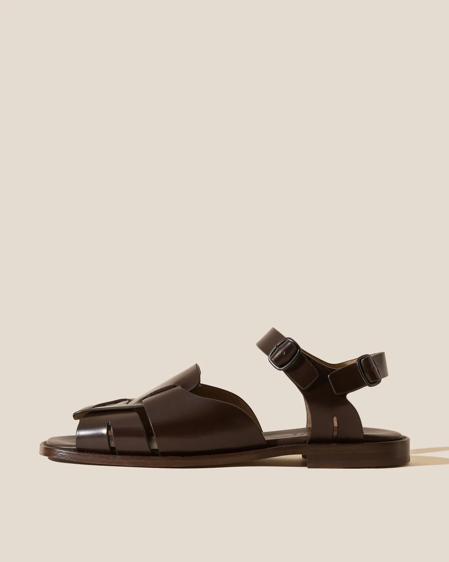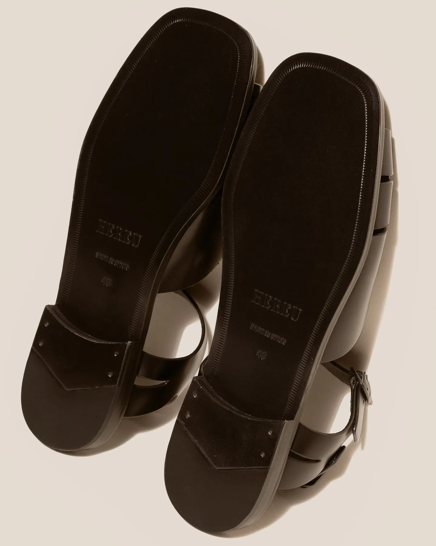 Square-toe two part fisherman sandal crafted in Spanish full grain calf leather.