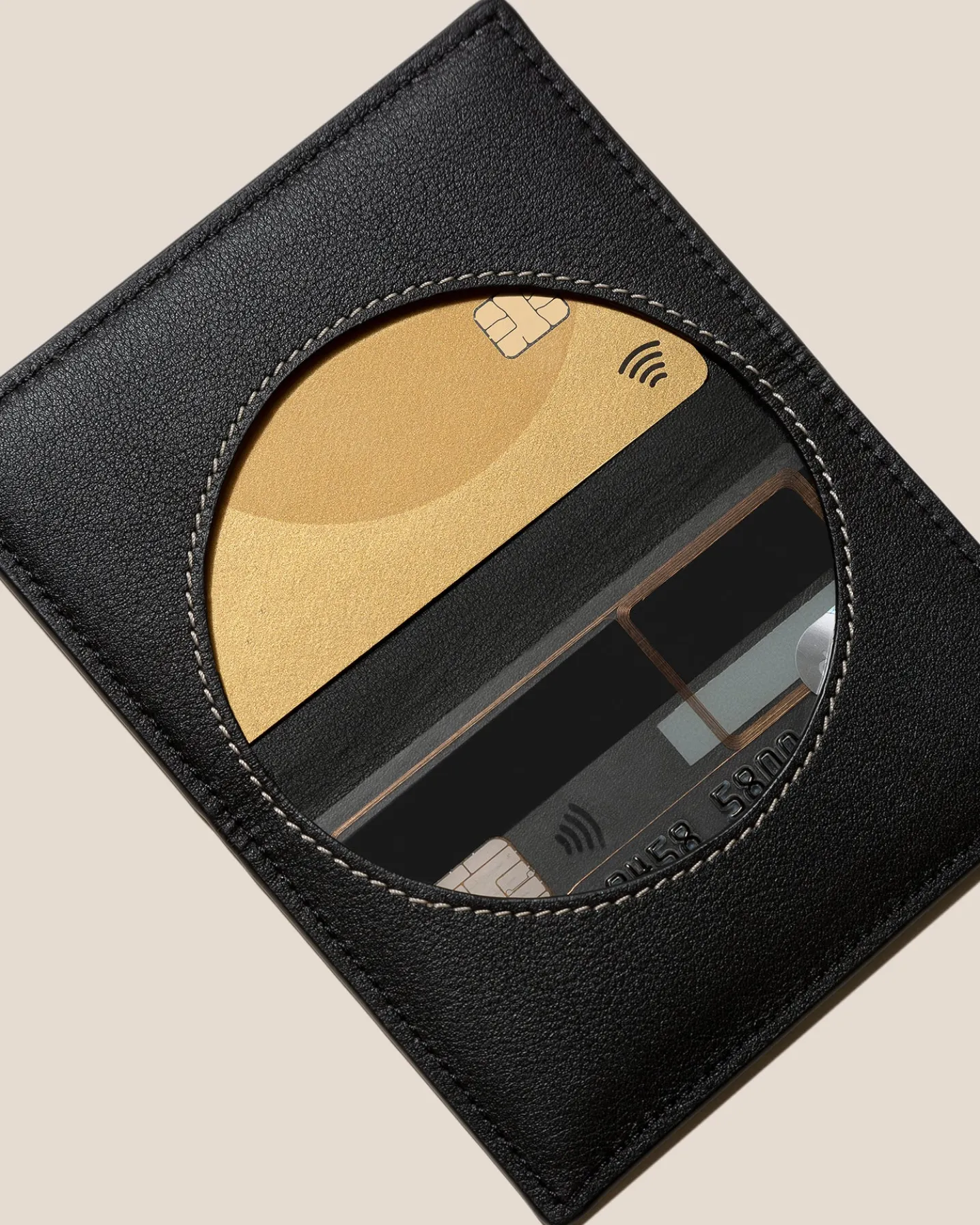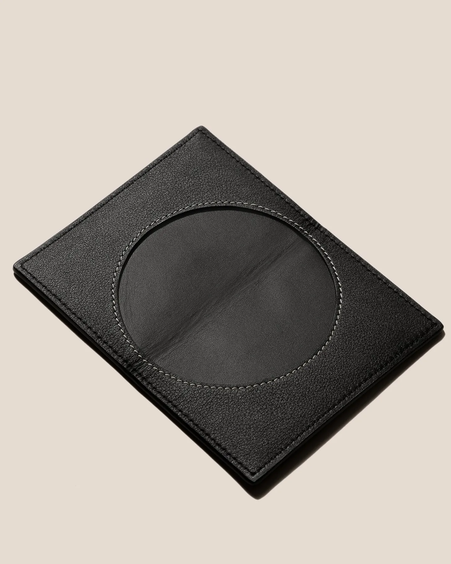 Foldable four-compartment card holder crafted in calf leather.