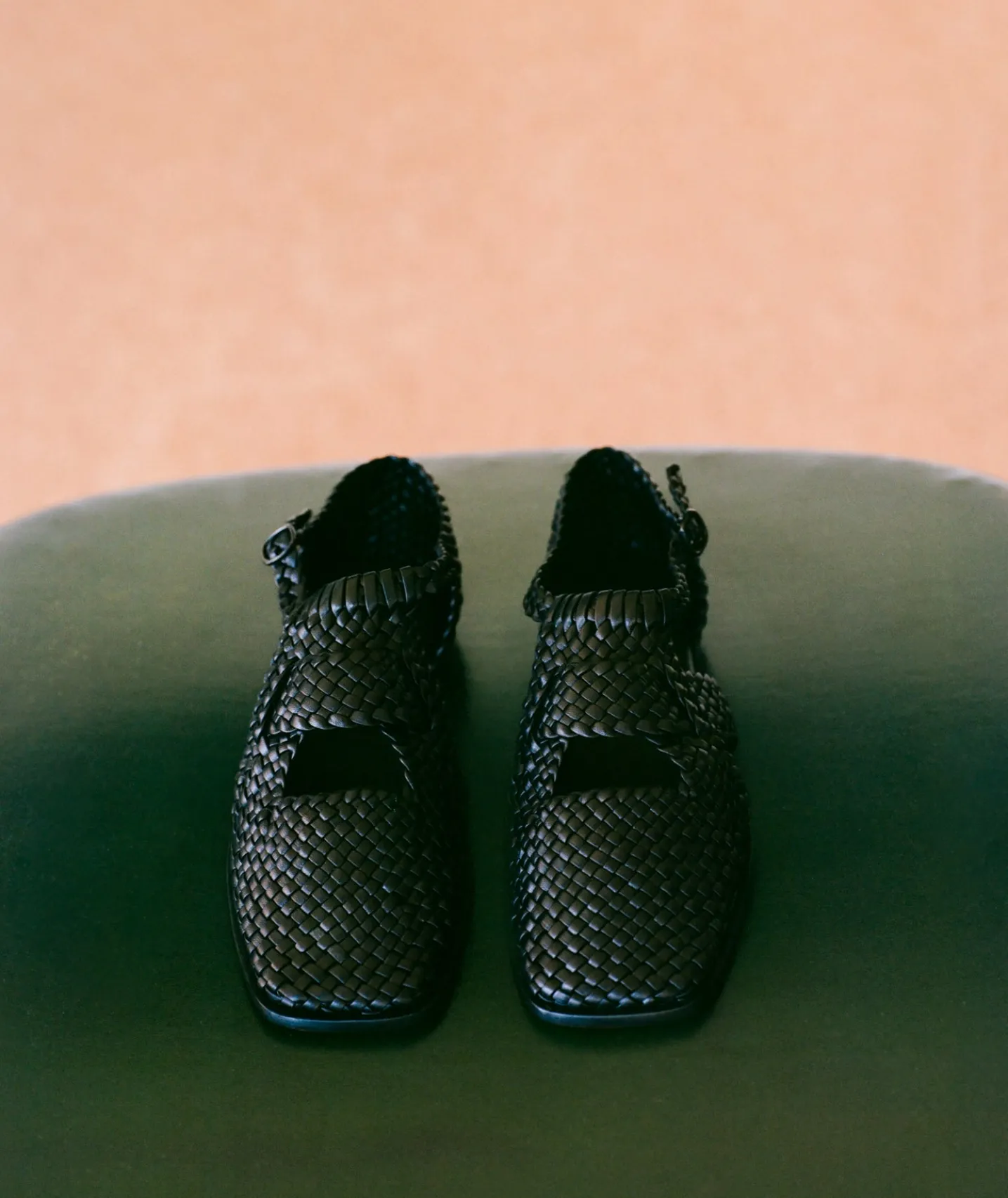 Woven T-bar sandal crafted in supple lambskin.