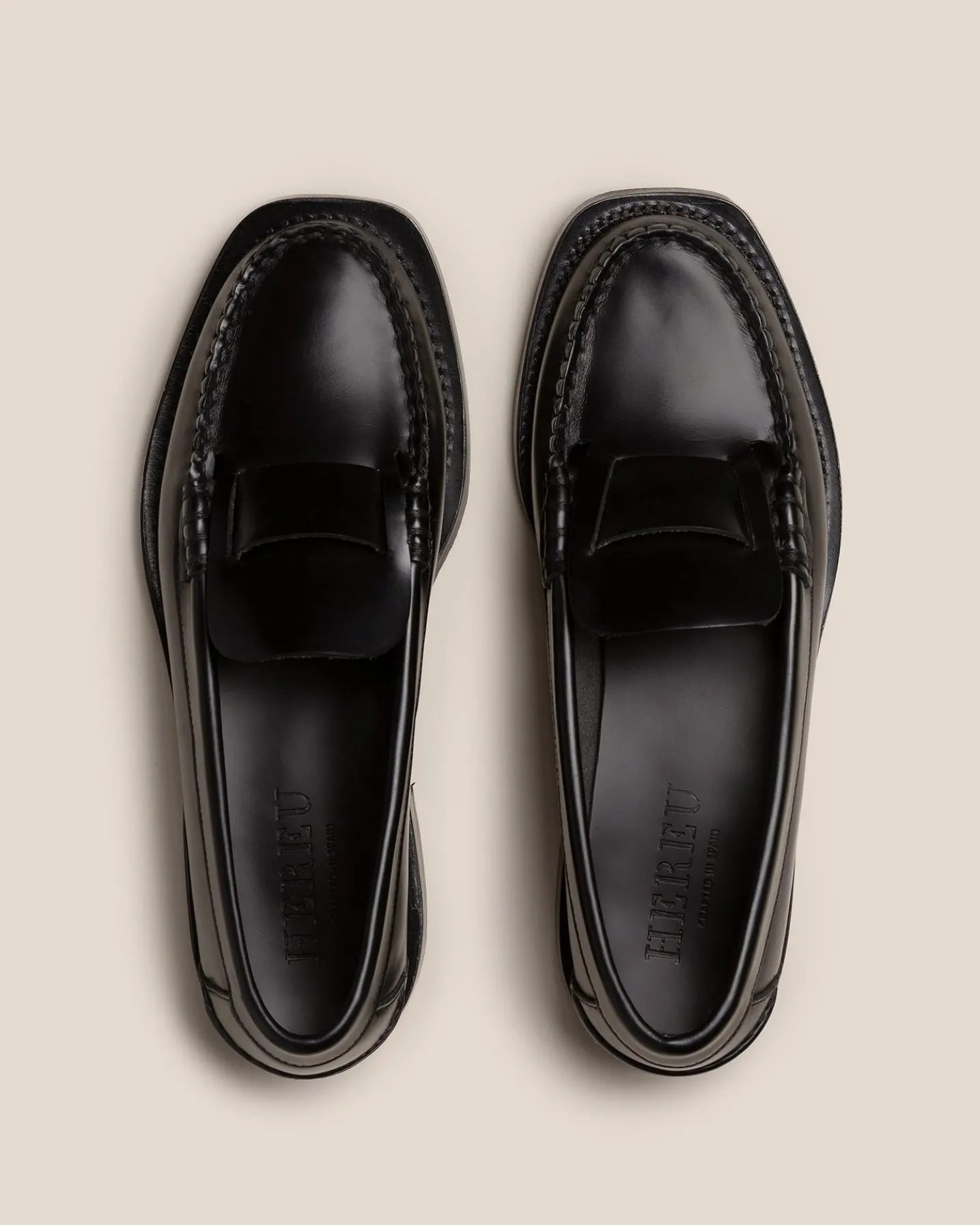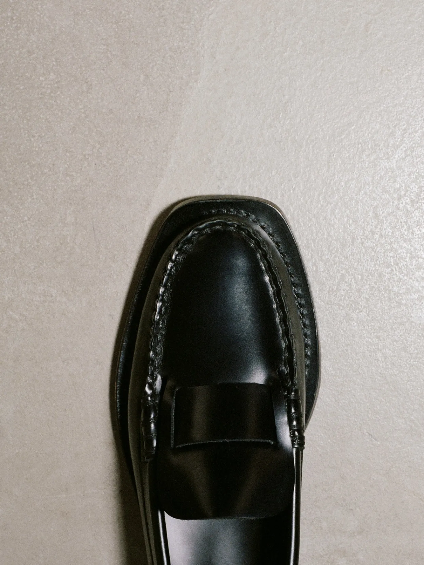 Slip-on loafer with interlaced detail crafted in Spanish structured calf leather.