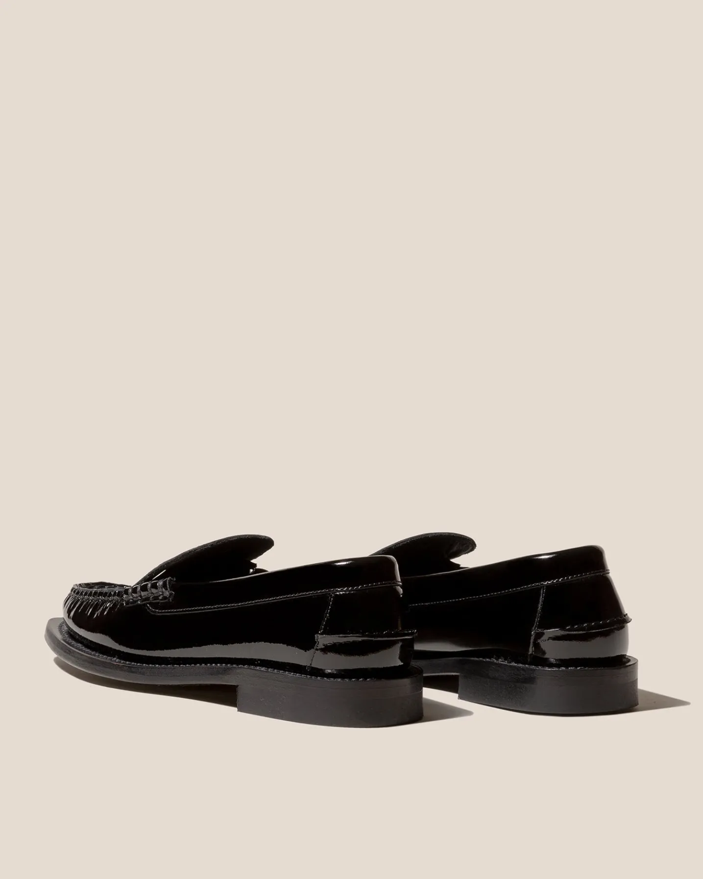 Slip-on loafer with interlaced detail crafted in glossy calf leather.