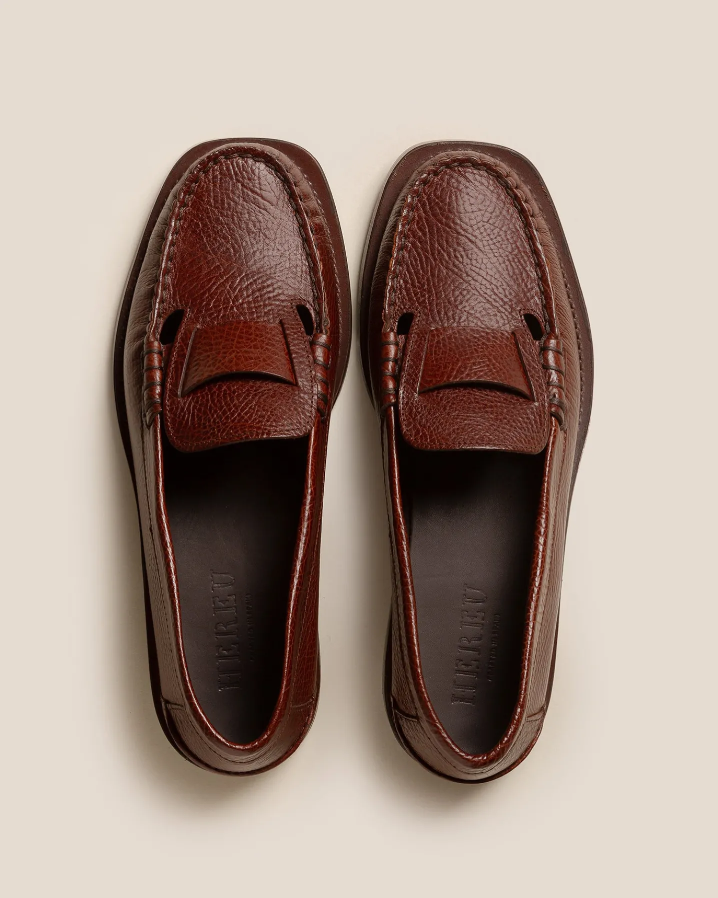 Slip-on loafer with interlaced detail, crafted in tumbled calf leather.