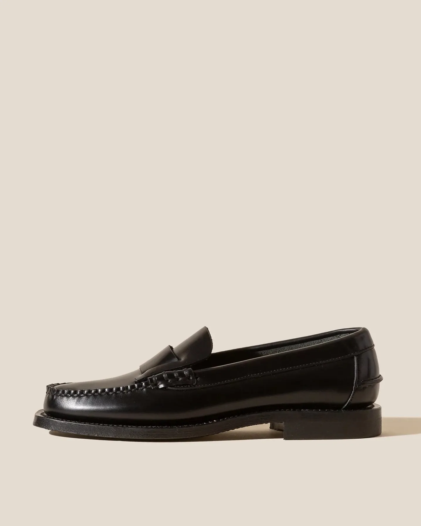 Slip-on loafer with interlaced detail crafted in Spanish structured calf leather.