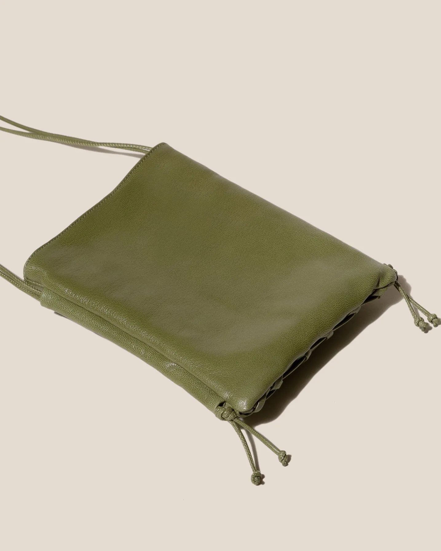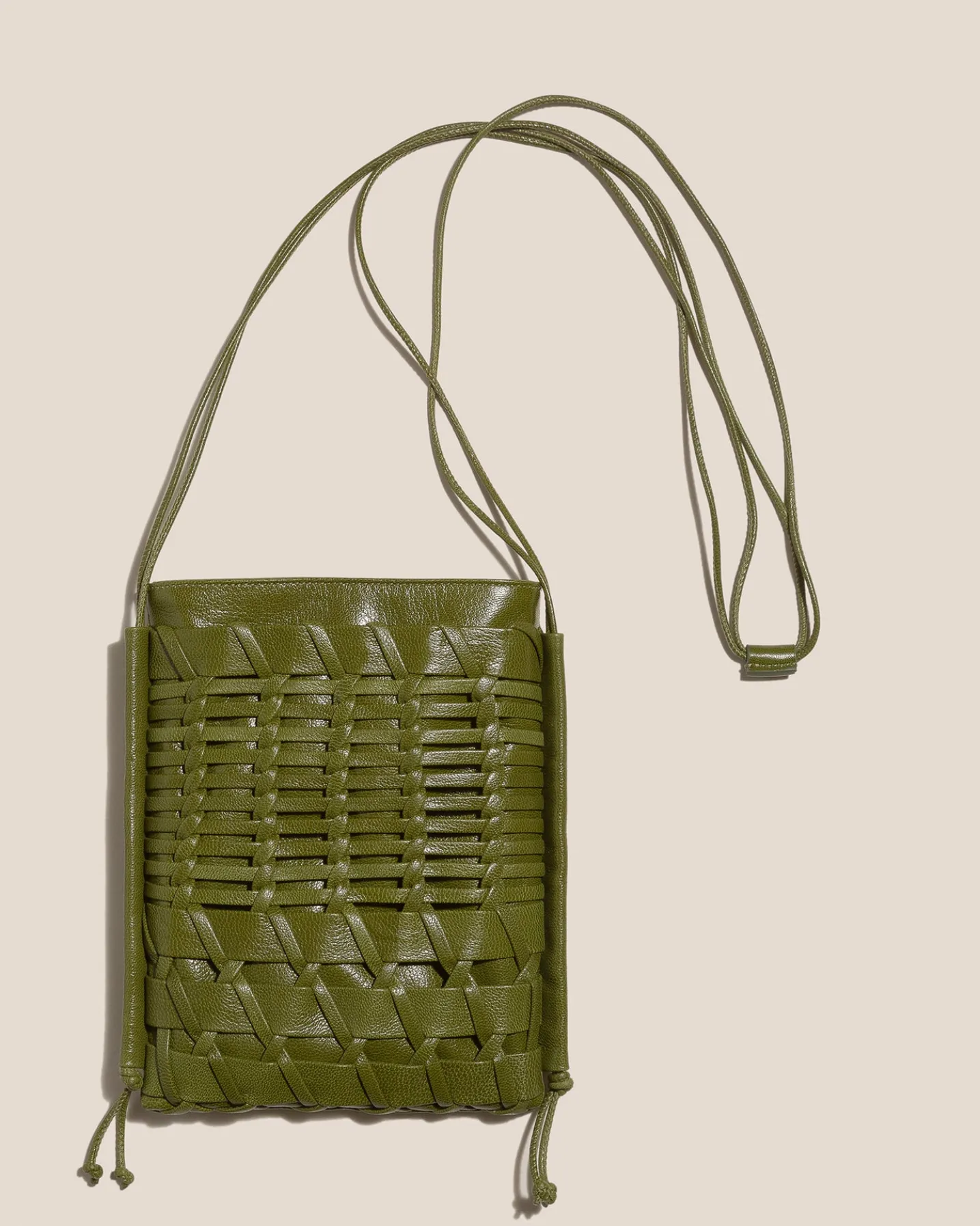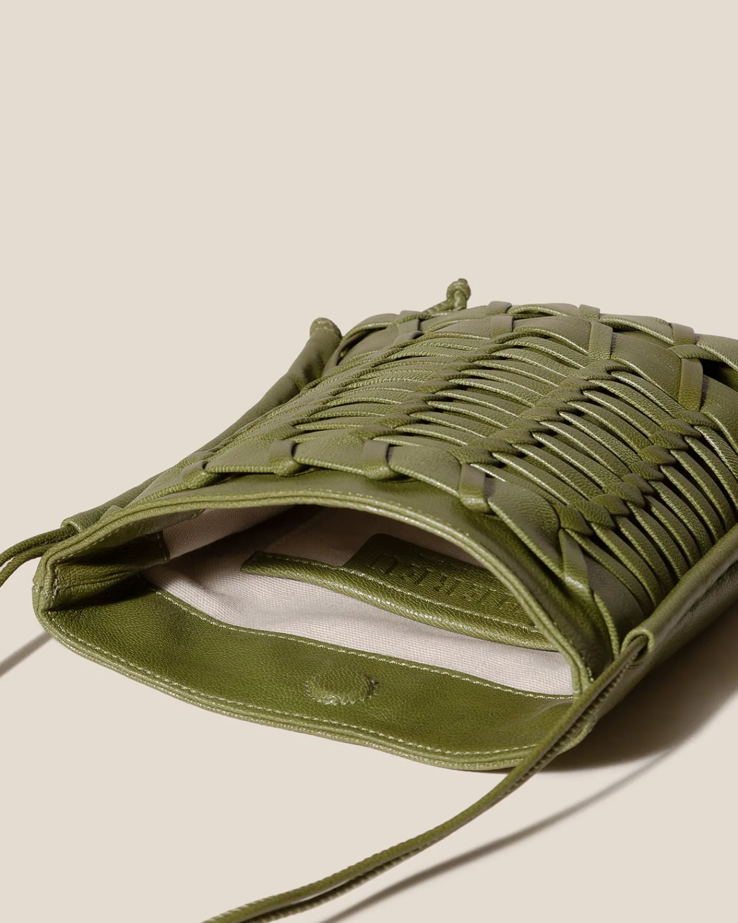 Flat square crossbody bag crafted in braided supple shiny lambskin.