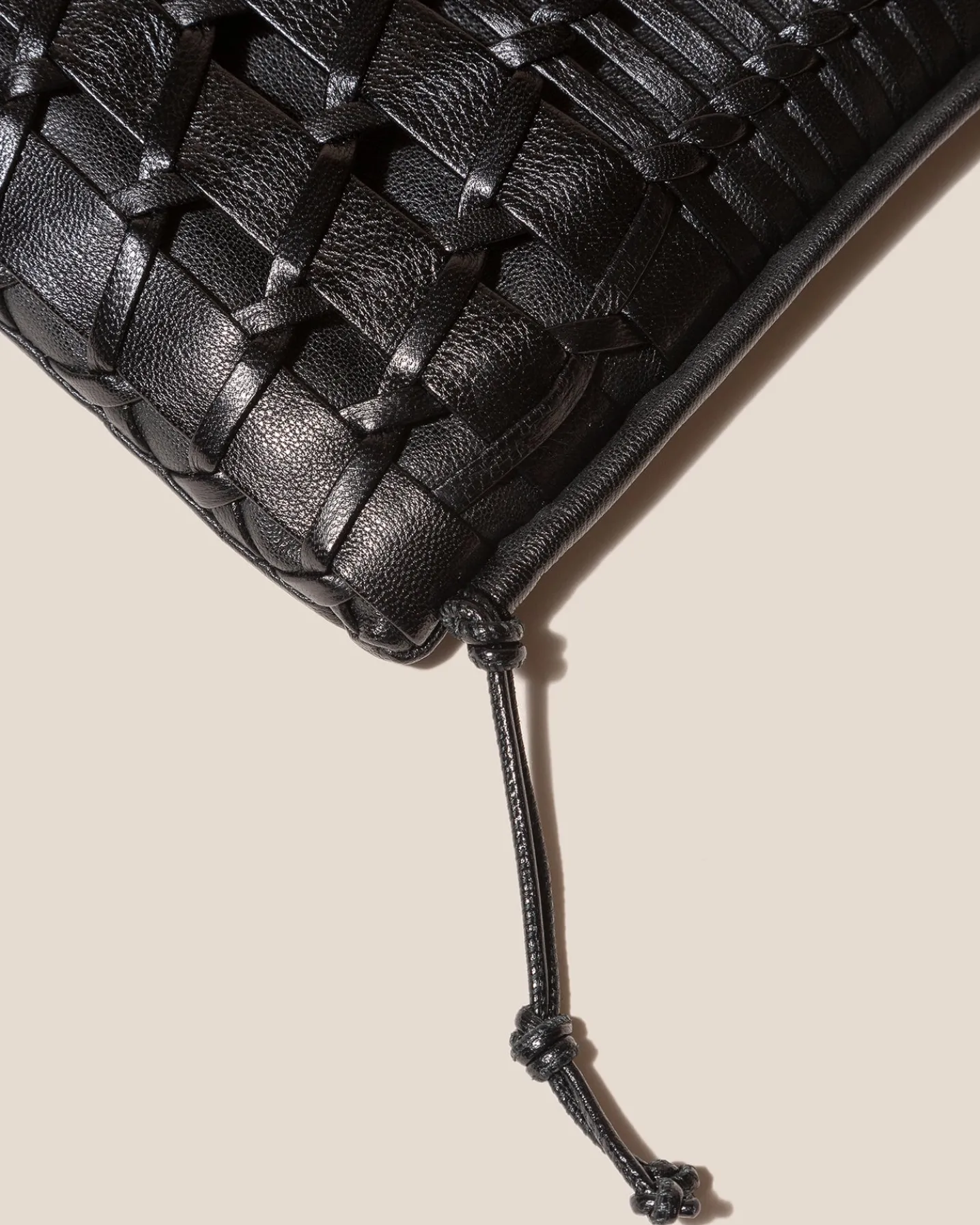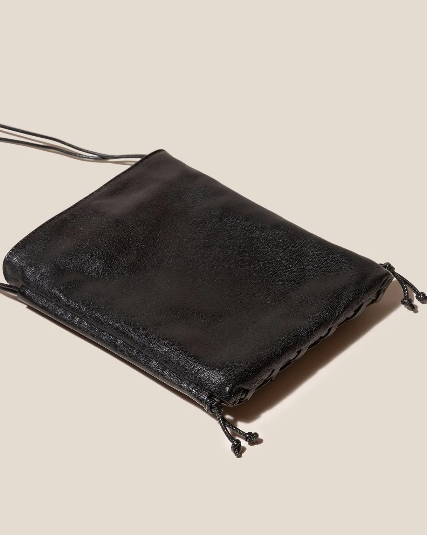 Flat square crossbody bag crafted in braided supple shiny lambskin.